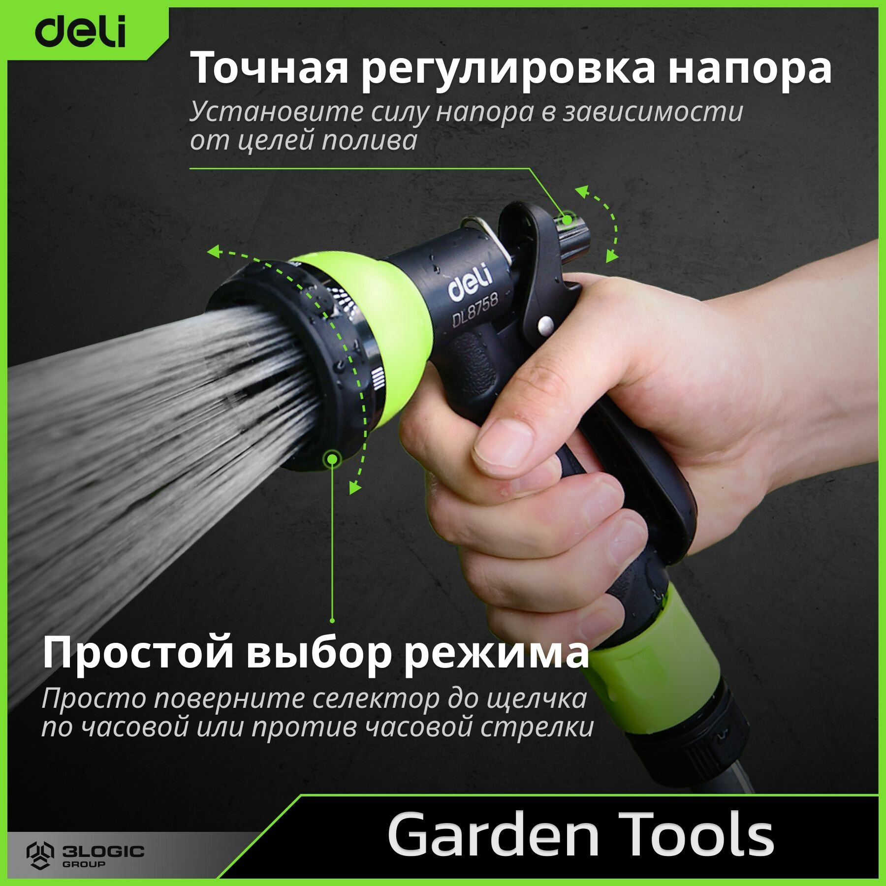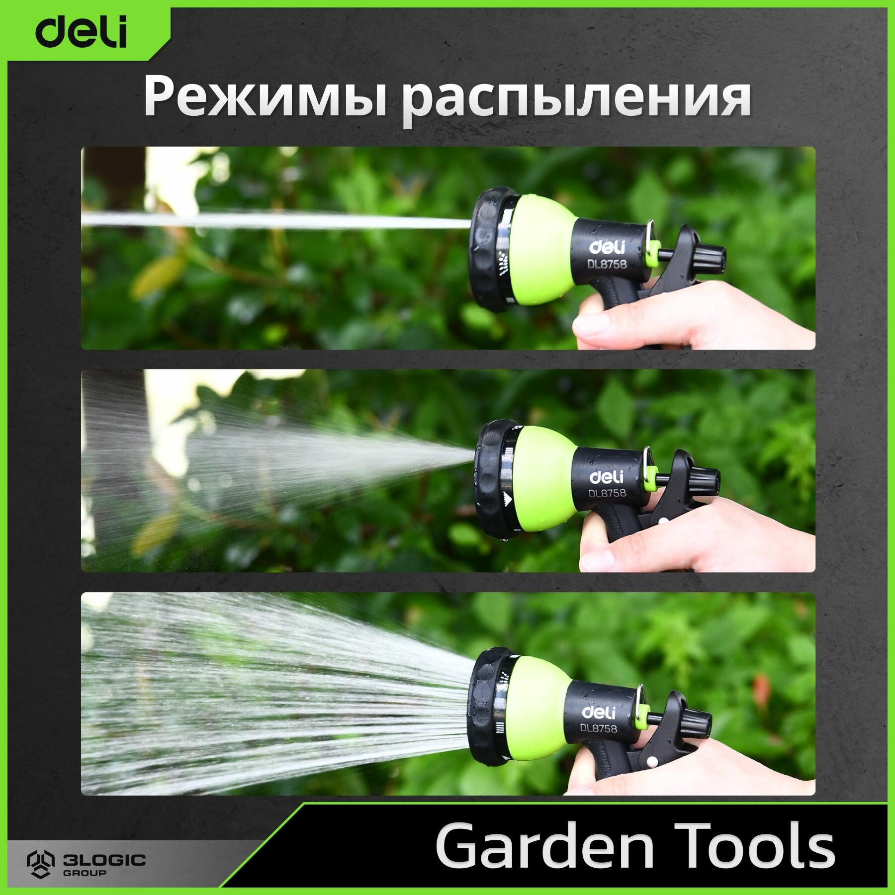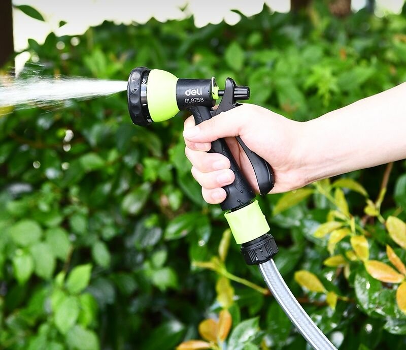 Пистолет-распылитель поливочный Deli DL8758 (7 режимов распыления, фиксатор курка, прорезиненная рукоять, пластиковый корпус) интересное:
