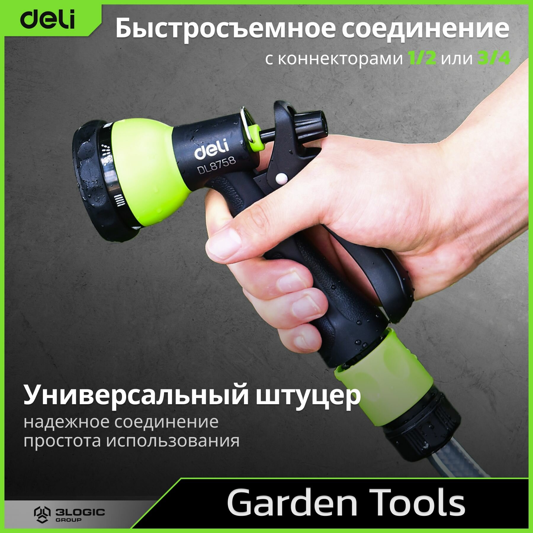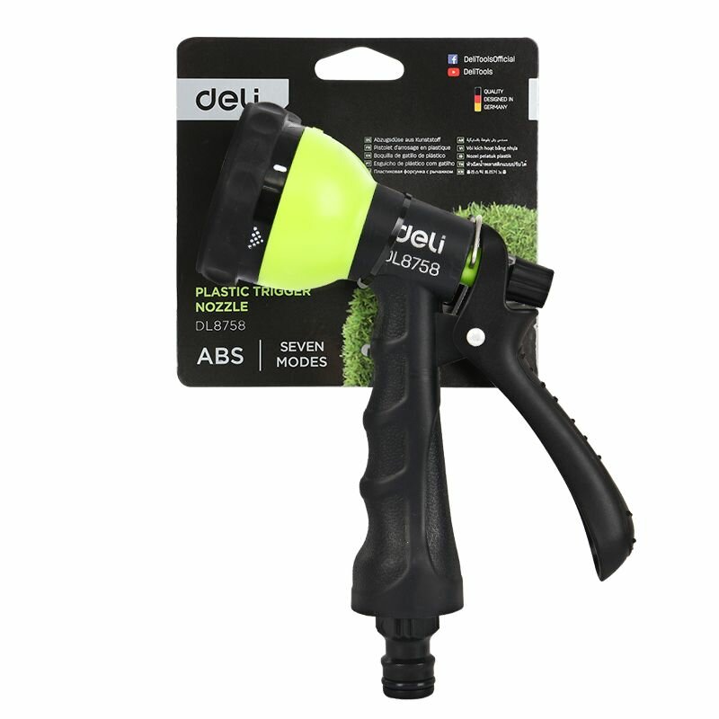 Купить Пистолет-распылитель поливочный Deli DL8758 (7 режимов распыления, фиксатор курка, прорезиненная рукоять, пластиковый корпус)