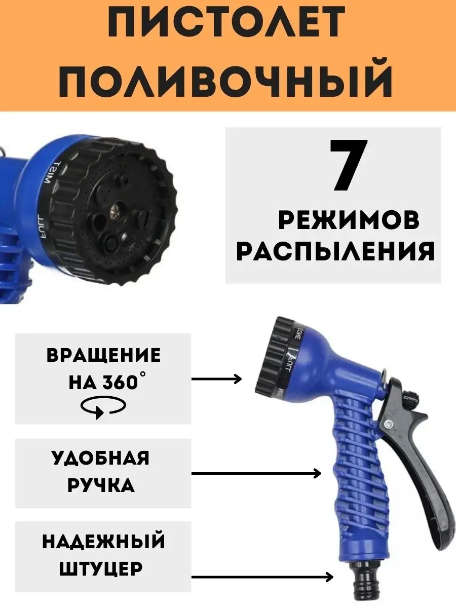 Пистолет распылитель для полива на шланг, 7 режимов интересное: