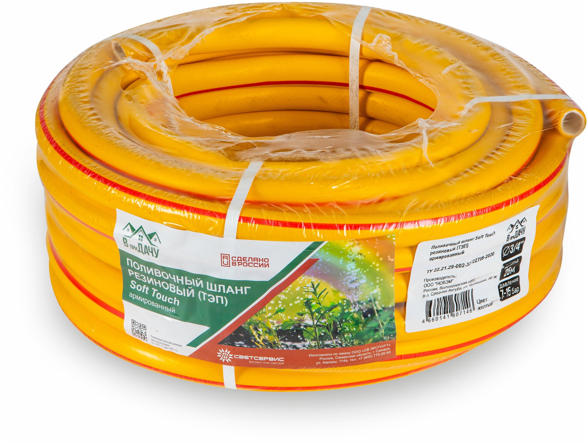 Шланг поливочный Резиновый (ТЭП) Soft Touch армированный, 1/2", 25 м, желтый, давление 7-15 бар. В придачу