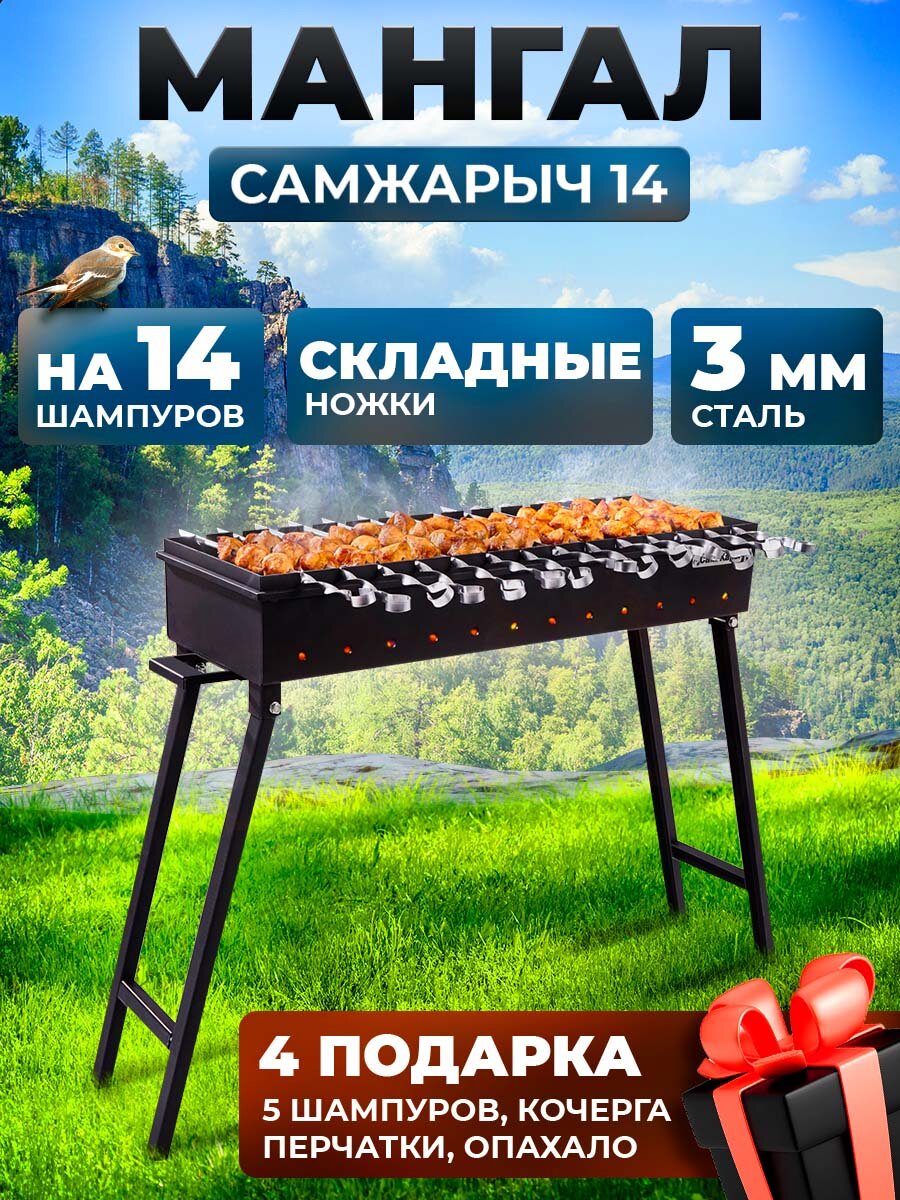 Мангал складной для дачи 3 мм СамЖарыч 14 шампуров интересное: