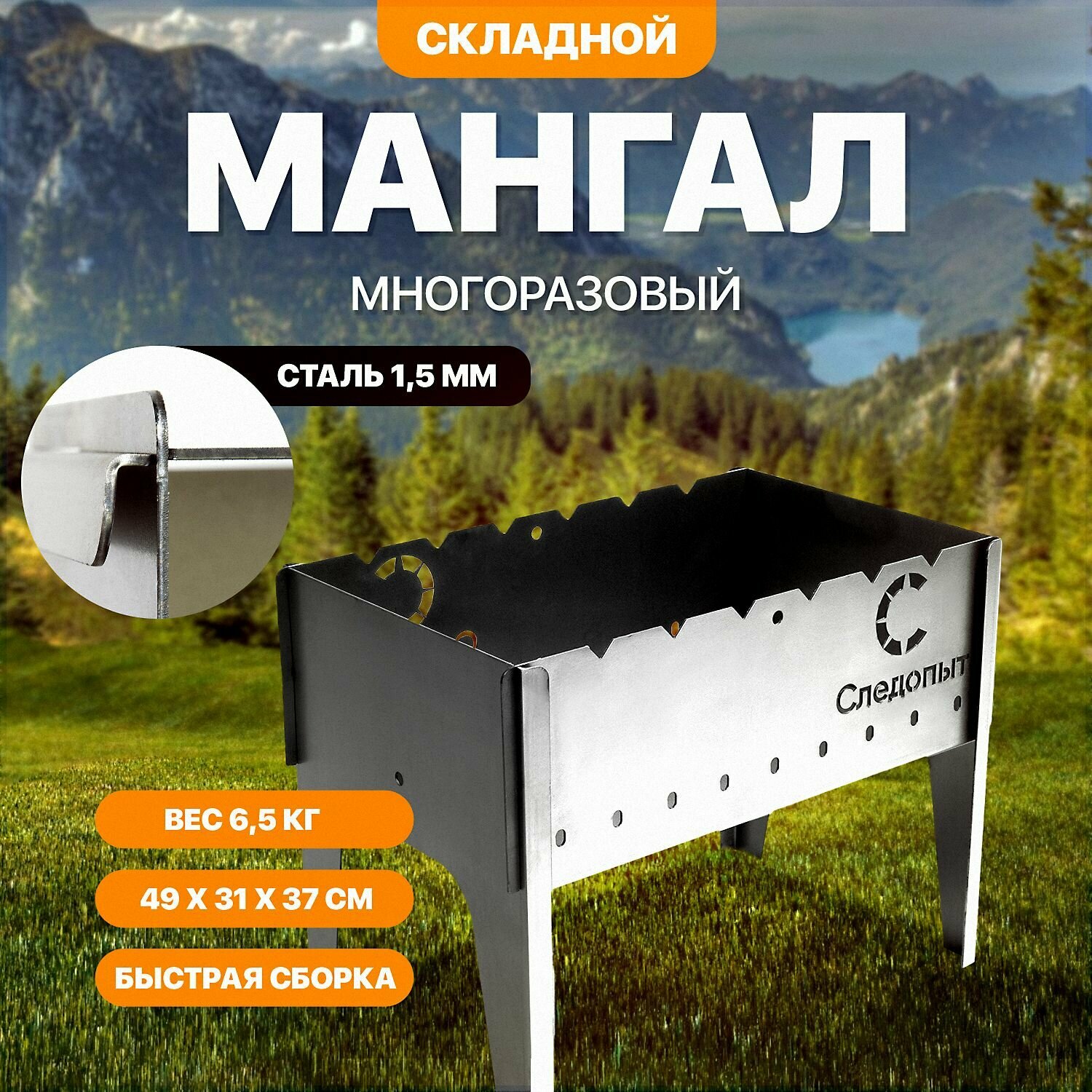 Мангал складной походный Следопыт, 490х310х370 мм, толщина 2 мм, многоразовый, без шампуров / Мангал дачный PF-GR-01