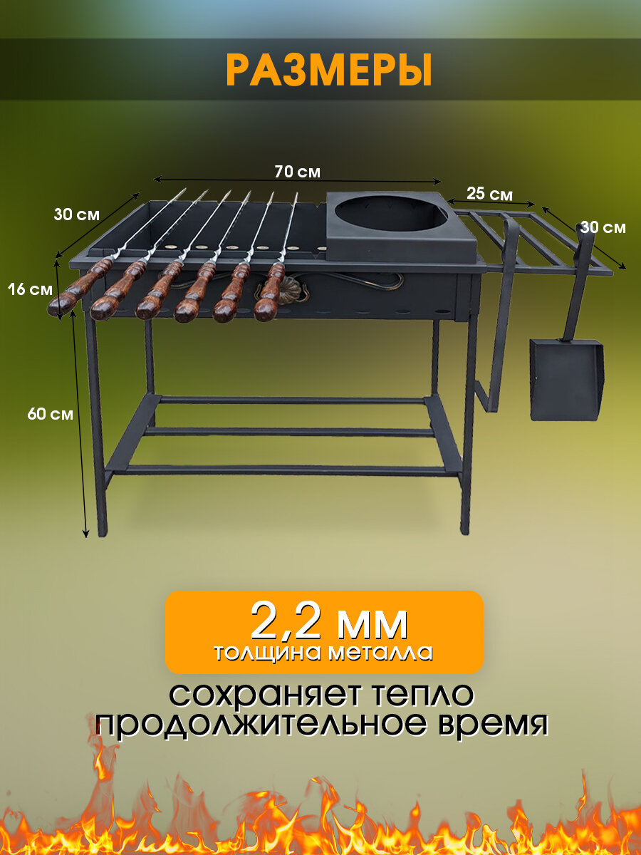 Мангал разборный, 2.2мм с подказанником, шампурами, совком и кочергой интересное: