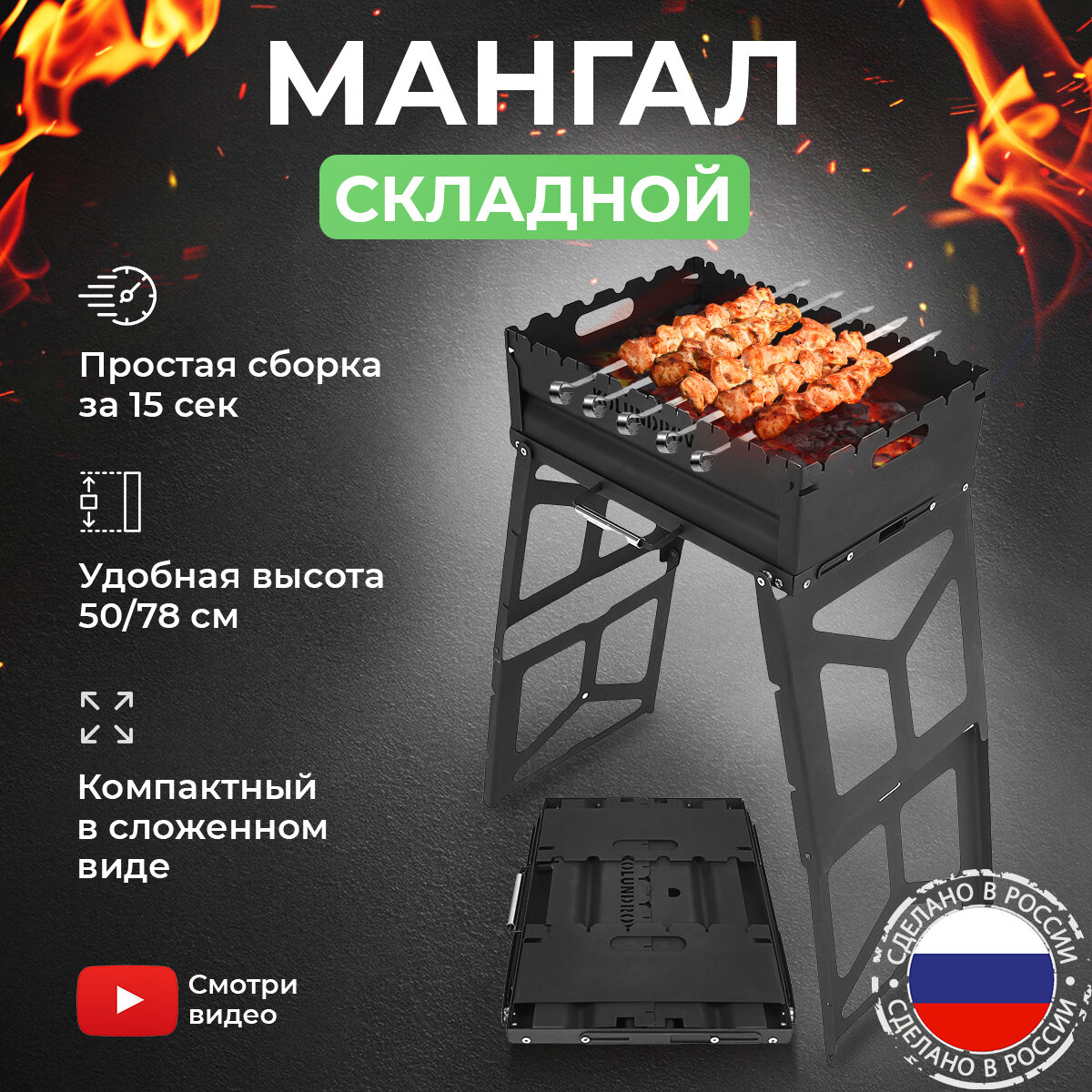 Мангал складной KOLUNDROV Складень, из стали 1,5 мм, с сумкой и кочергой, высокий разборный походный раскладной, для дома и дачи, пикника и барбекю интересное: