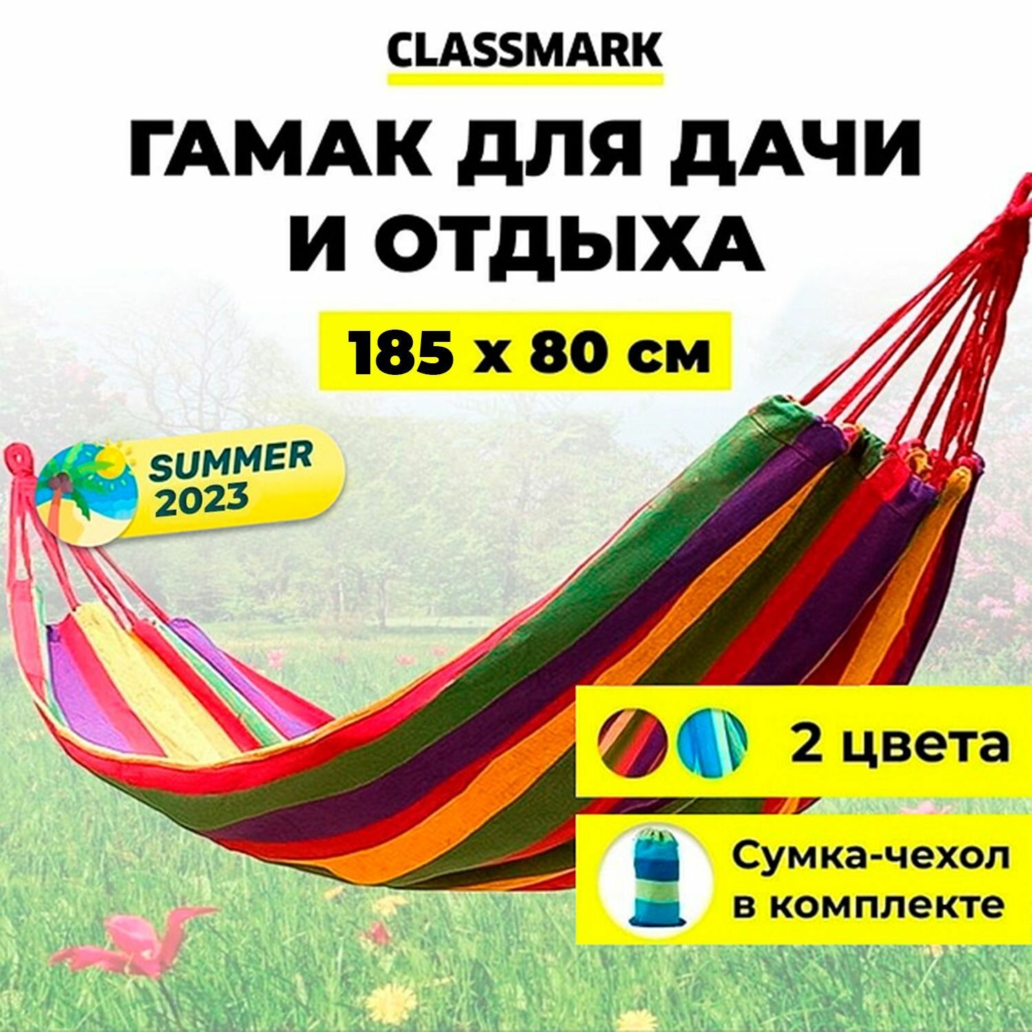 Гамак для дачи Classmark, 185х80, подвесной, уличный, туристический, домашний для похода, туризма, отдыха и кемпинга, для взрослых и детей