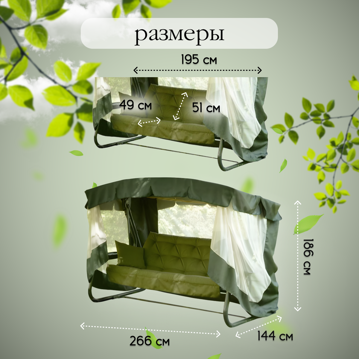 | Ширина качелей | 266 см |