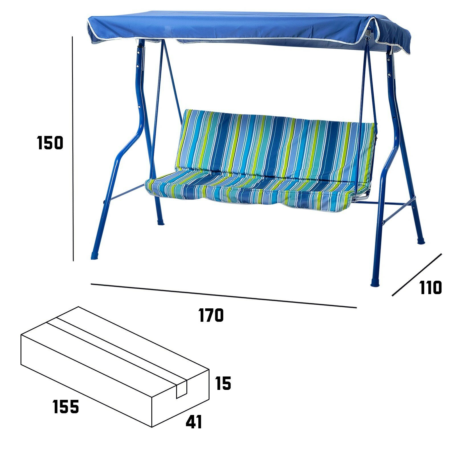 Купить Качели садовые "Уют" синие, 170 х 150 х 110 см, максимальная нагрузка 210 кг