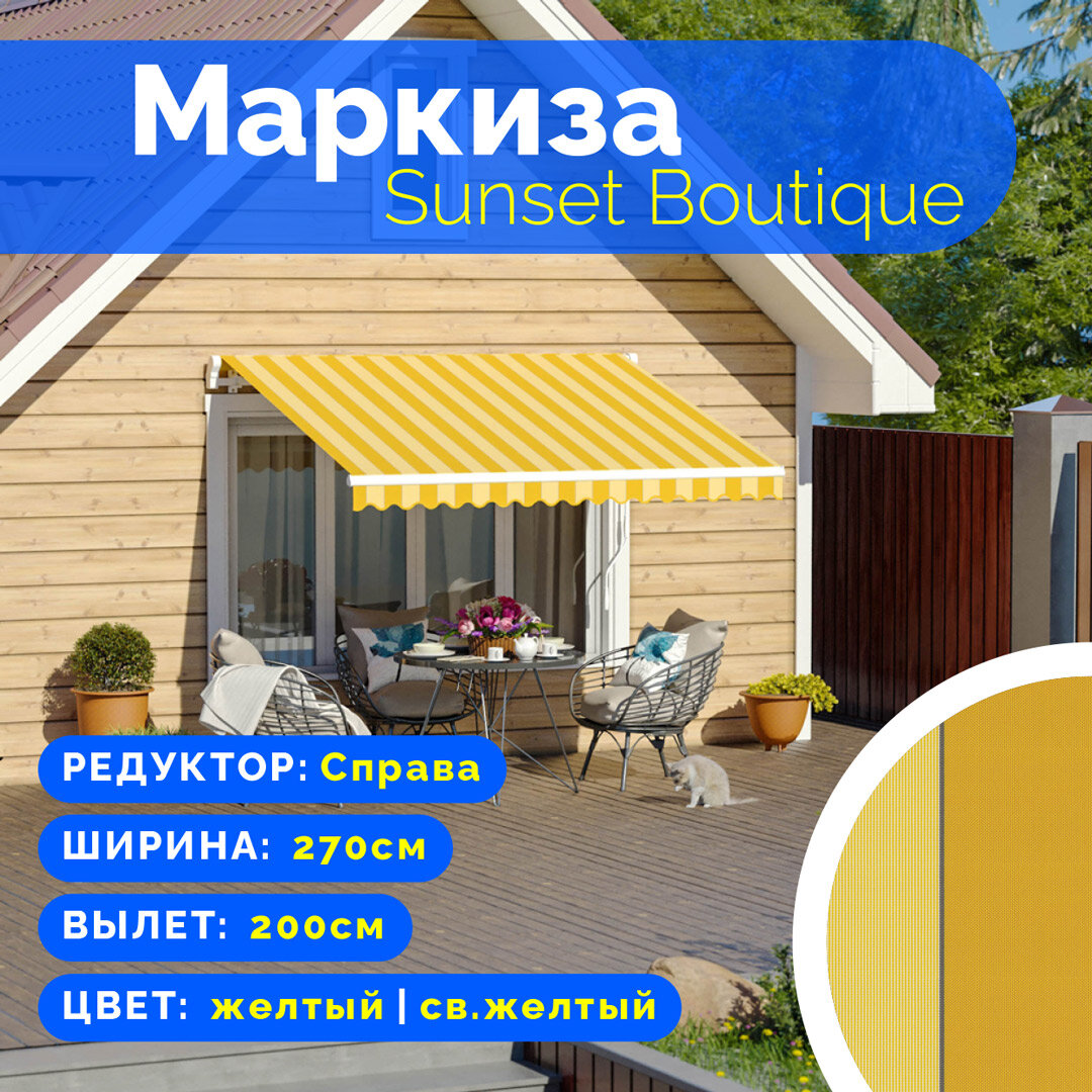 СохранитьМаркиза Sunset Boutique - выдвижной навес (2,7*2 м) цвет желтый-св. желтый редуктор справа интересное:
