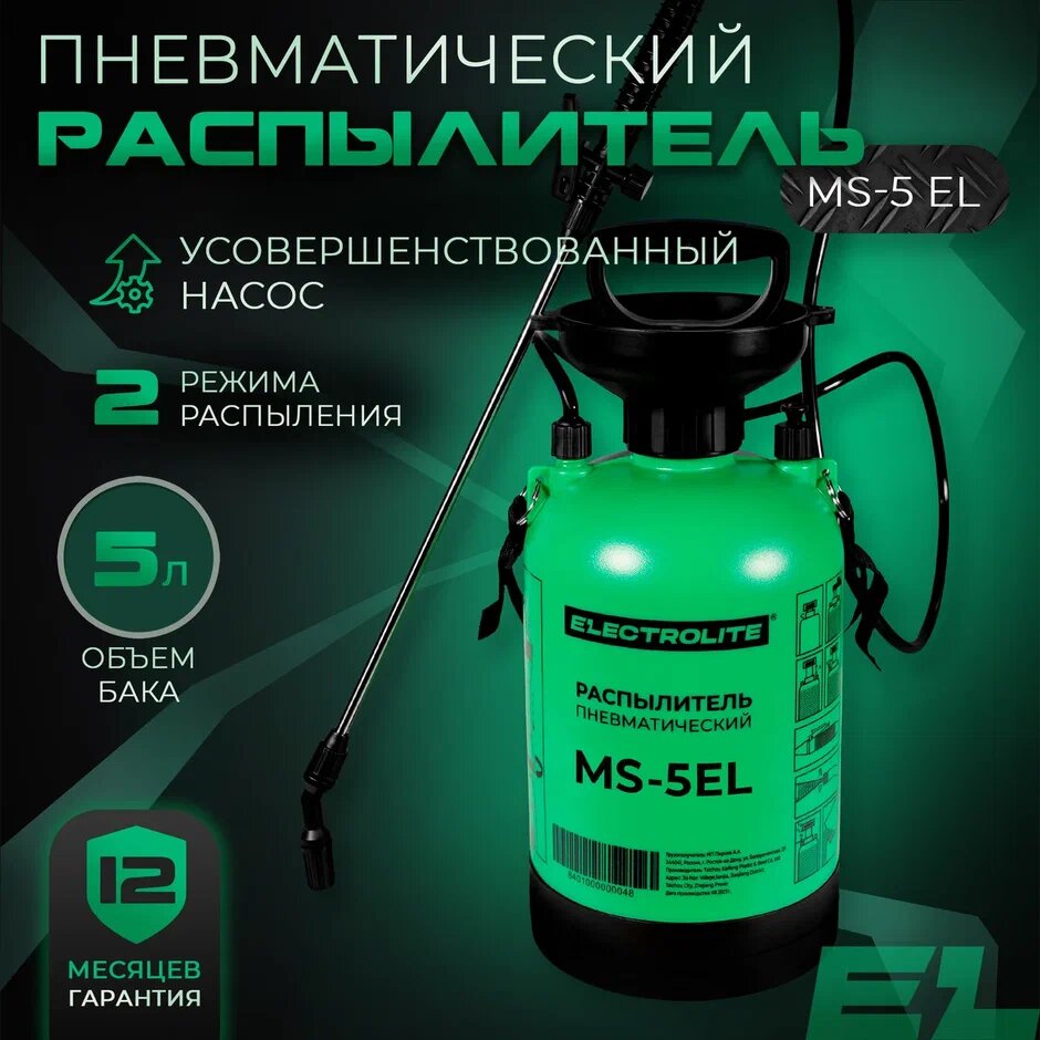 Опрыскиватель ручной пневматический / Пульверизатор / Распылитель для воды / Опрыскиватель помповый ELECTROLITE MS-5EL ( 5 л, 0,36 л/мин, ) интересное: