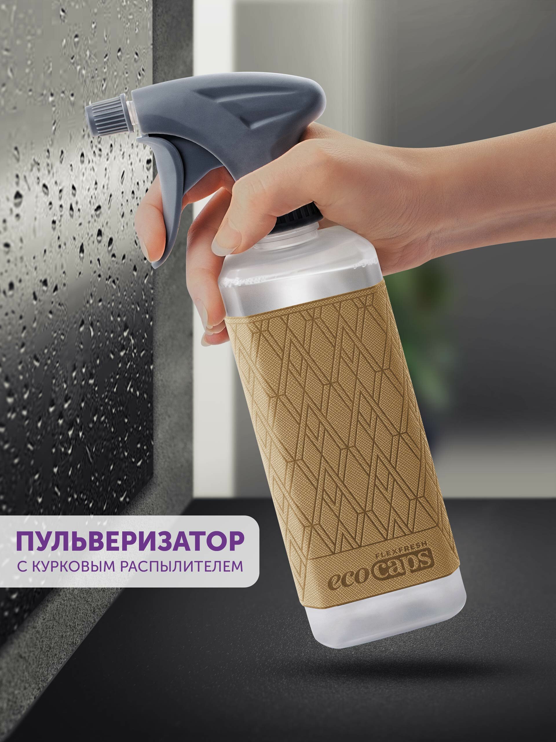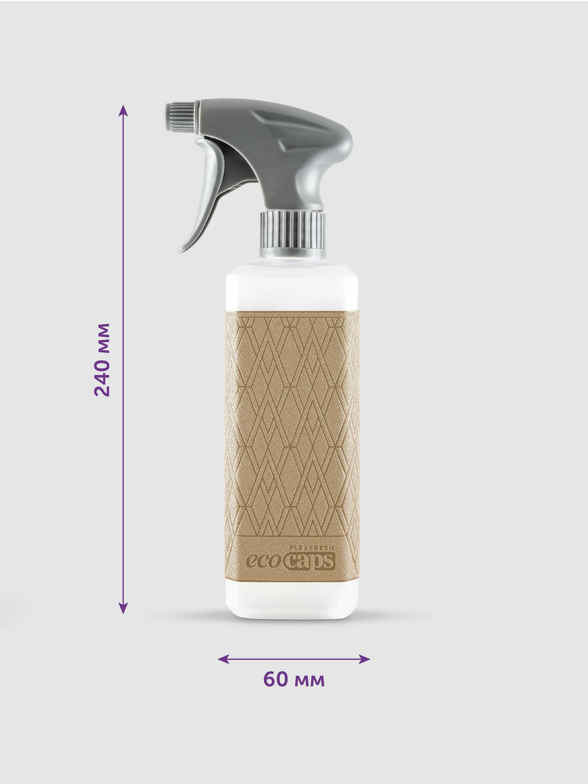Флакон с распылителем 500 мл EcoCaps с наклейкой из экокожи Saffiano, цвет Бежевый интересное: