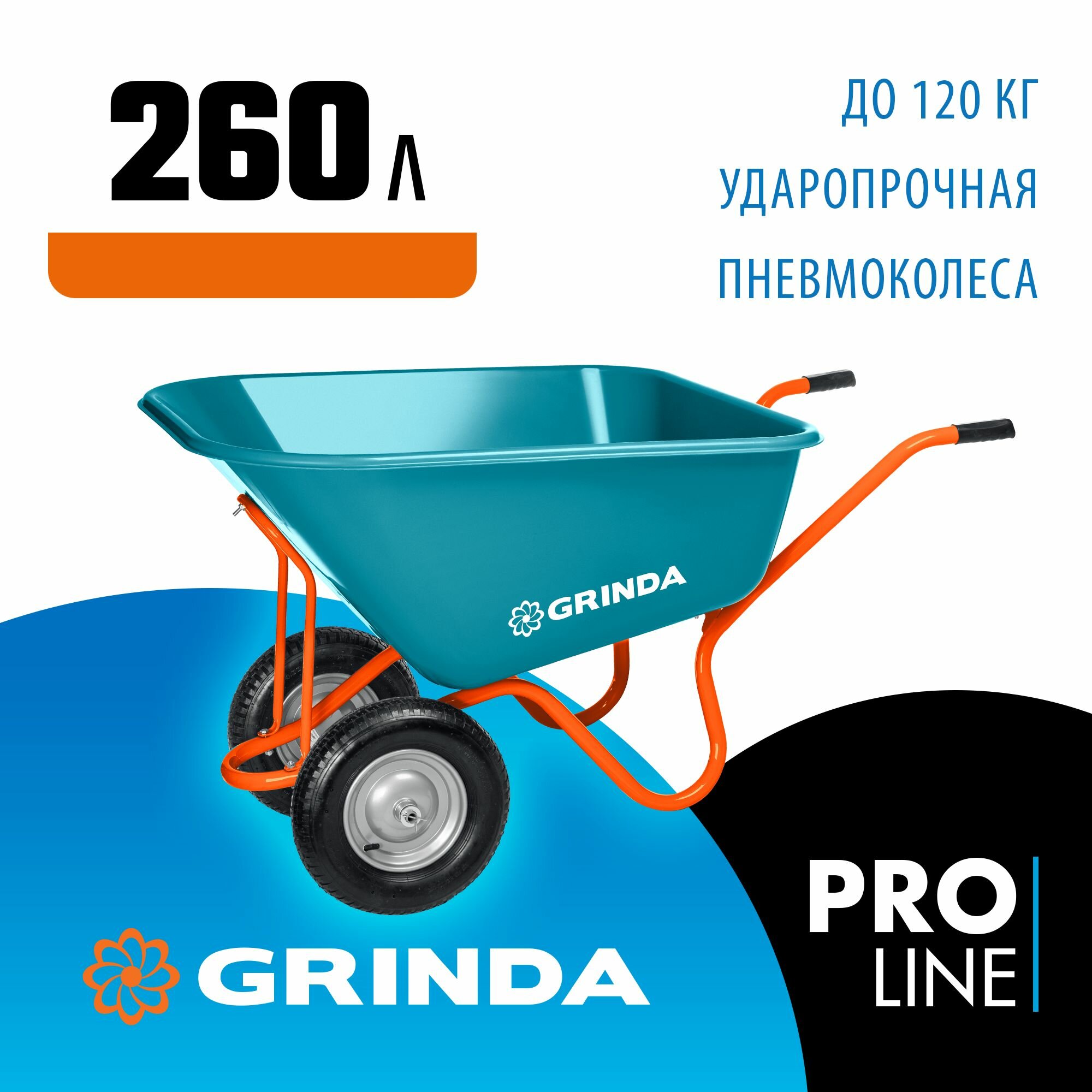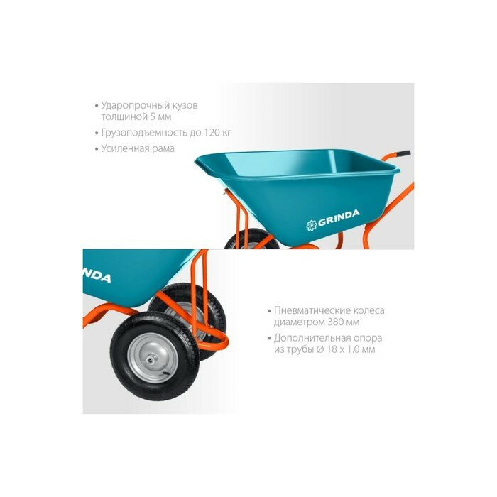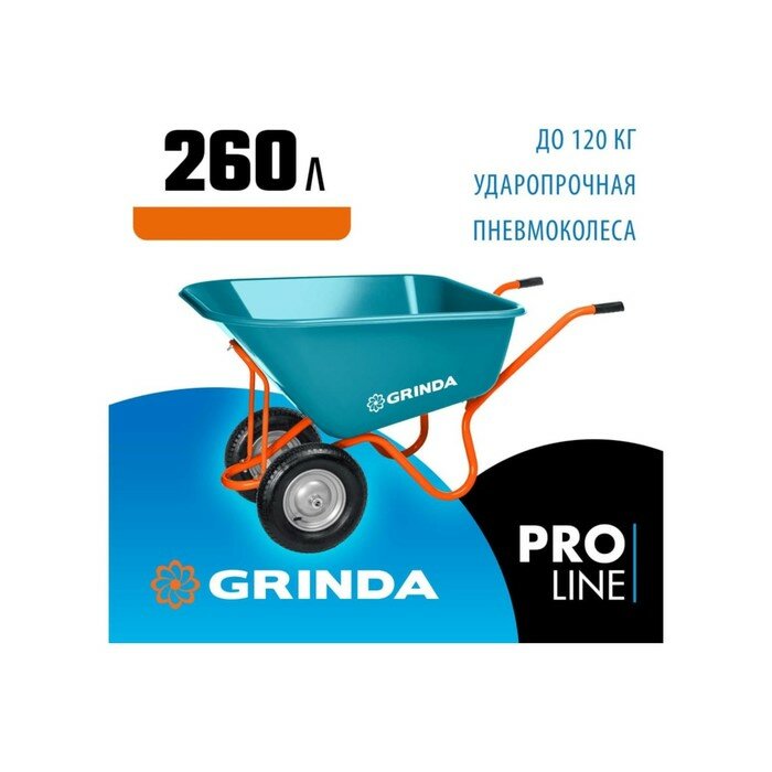 Садовая тачка с кузовом увеличенного объема 260л GRINDA GP-1, г/п 120кг, ударопрочный пластиковый ку