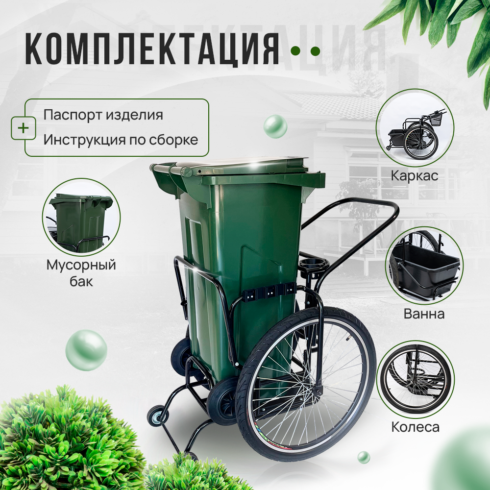 Тележка для уборки EWA многофункциональная / садовая тележка для уборки улиц / мусорный контейнер 120 литров и ведро 60 литров в комплекте интересное: