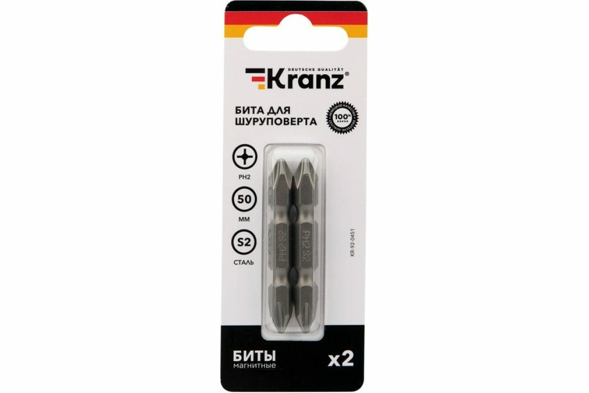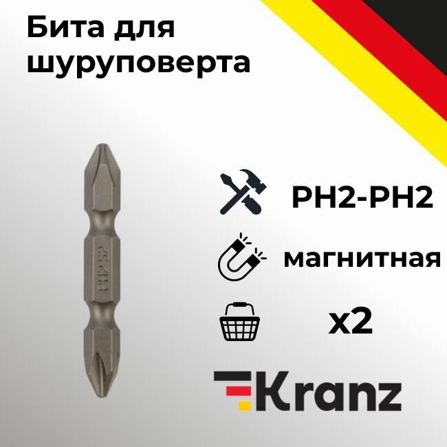 Бита износостойкая для шуруповерта KRANZ с магнитным наконечником PH2-PH2х50 мм, 2 штуки