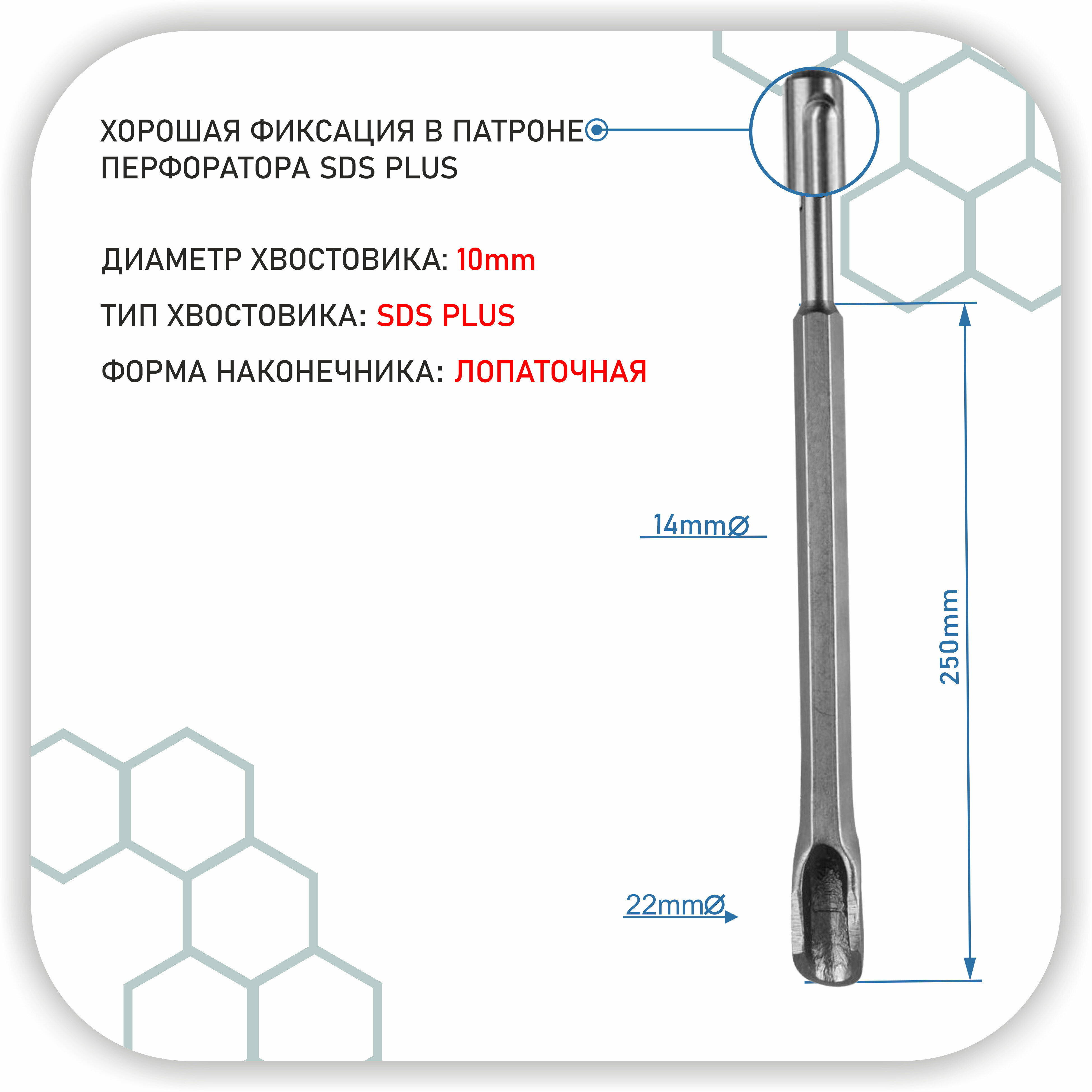Зубило штробник на перфоратор SDS-plus, штробер, повышенной прочности по камню, бетону, кирпичу 14x250х22 мм интересное: