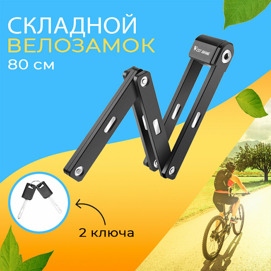 Замок для велосипеда складной с ключом противоугонный 80см West Biking черный интересное: