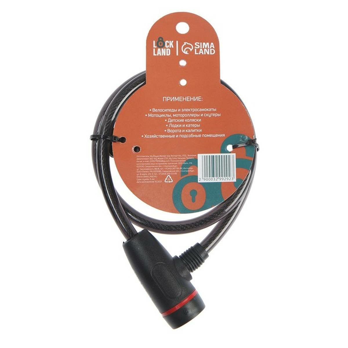 Замок велосипедный Lockland, навесной, трос из стали, цвет черный, 800х10 мм, 2 ключа, 1 набор интересное: