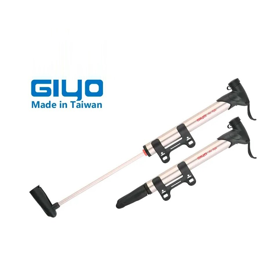 Насос для велосипеда GIYO GP07, алюминиевый, 8 атм/120psi, складная эргономичная Т- образная ручка, вентиль “авто/presta”, с креплением на раму