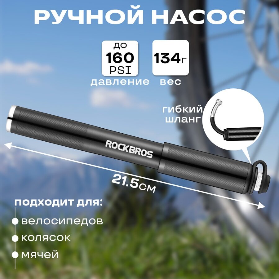 Насос для велосипеда ручной ROCKBROS ниппель Schrader/Presta, с выдвижным шлангом, креплением интересное: