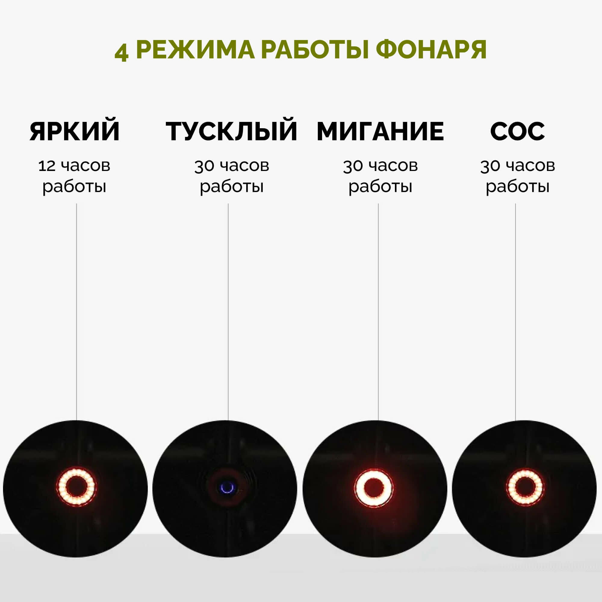 | Особенности | USB-зарядка / влагозащищенный / стоп-сигнал |