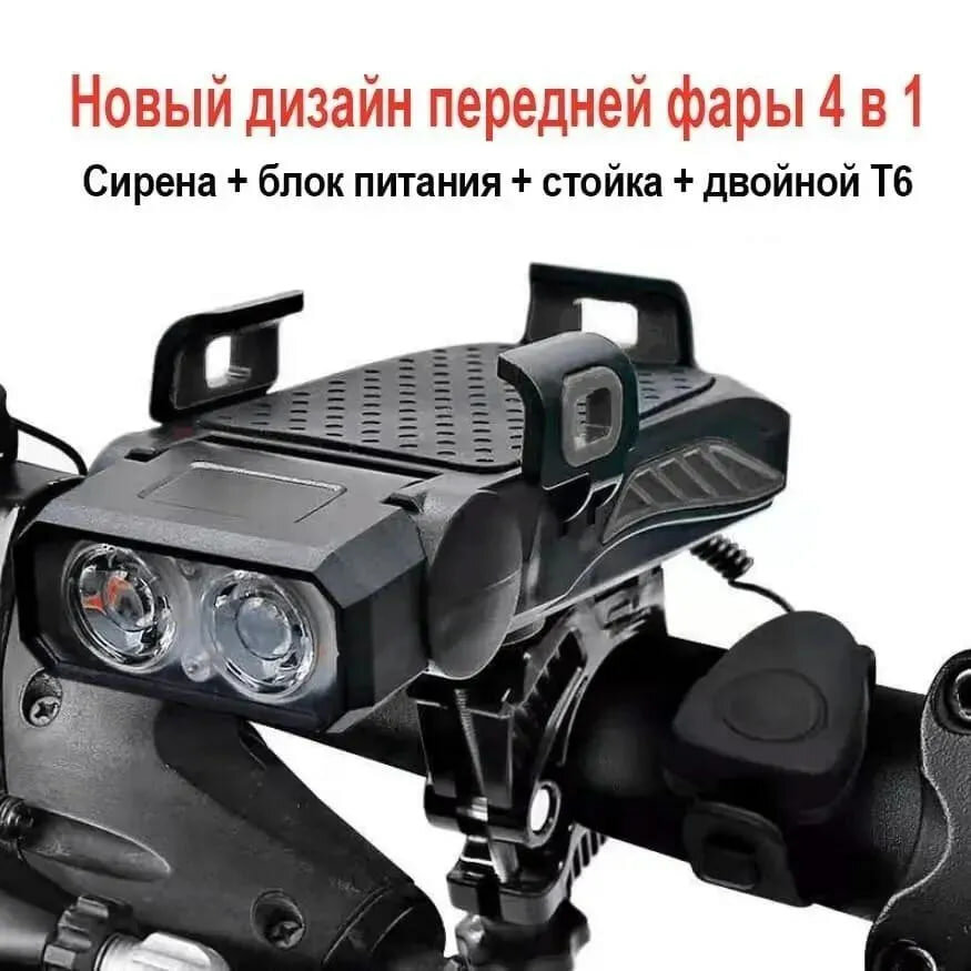 Купить Многофункциональный велосипедный фонарь 4 в 1, фонарик, велосипедный звуковой сигнал, звонок, держатель телефона, повербанк от GadFamily_Shop