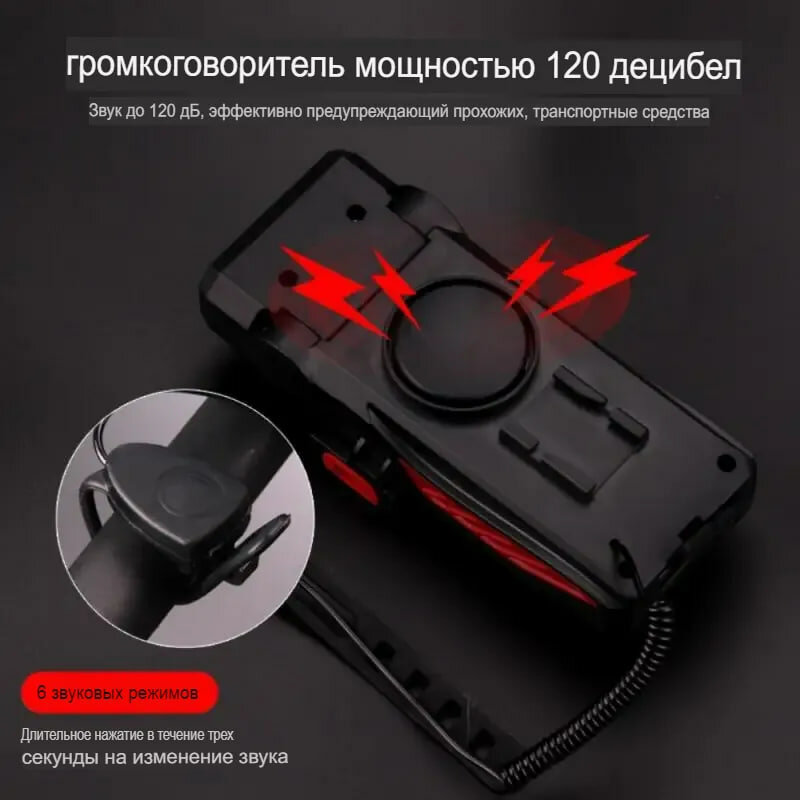 | Особенности | USB-зарядка / влагозащищенный / выносная кнопка переключения режимов / звуковой сигнал / регулировка угла наклона |