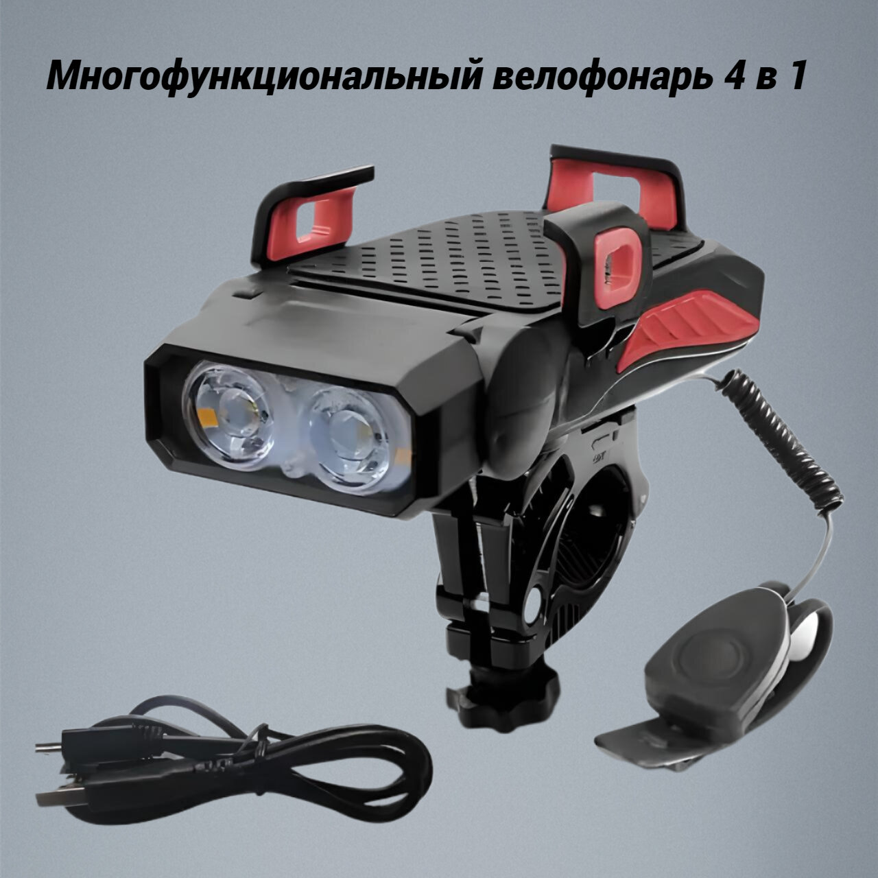 Многофункциональный велосипедный фонарь 4 в 1, фонарик, велосипедный звуковой сигнал, звонок, держатель телефона, повербанк от GadFamily_Shop интересное: