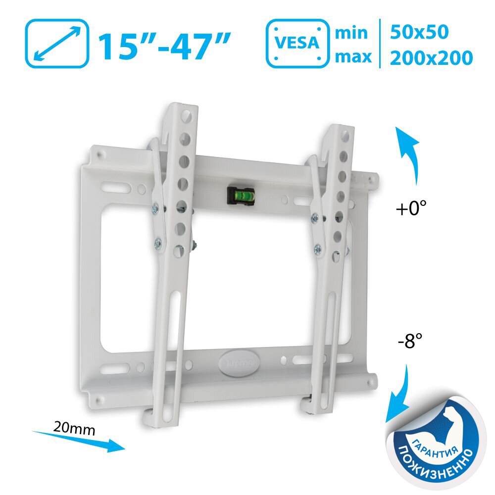 Для телевизоров Kromax Кронштейн Kromax IDEAL-6, для ТВ, наклонный, 15-47", 20 мм от стены, белый