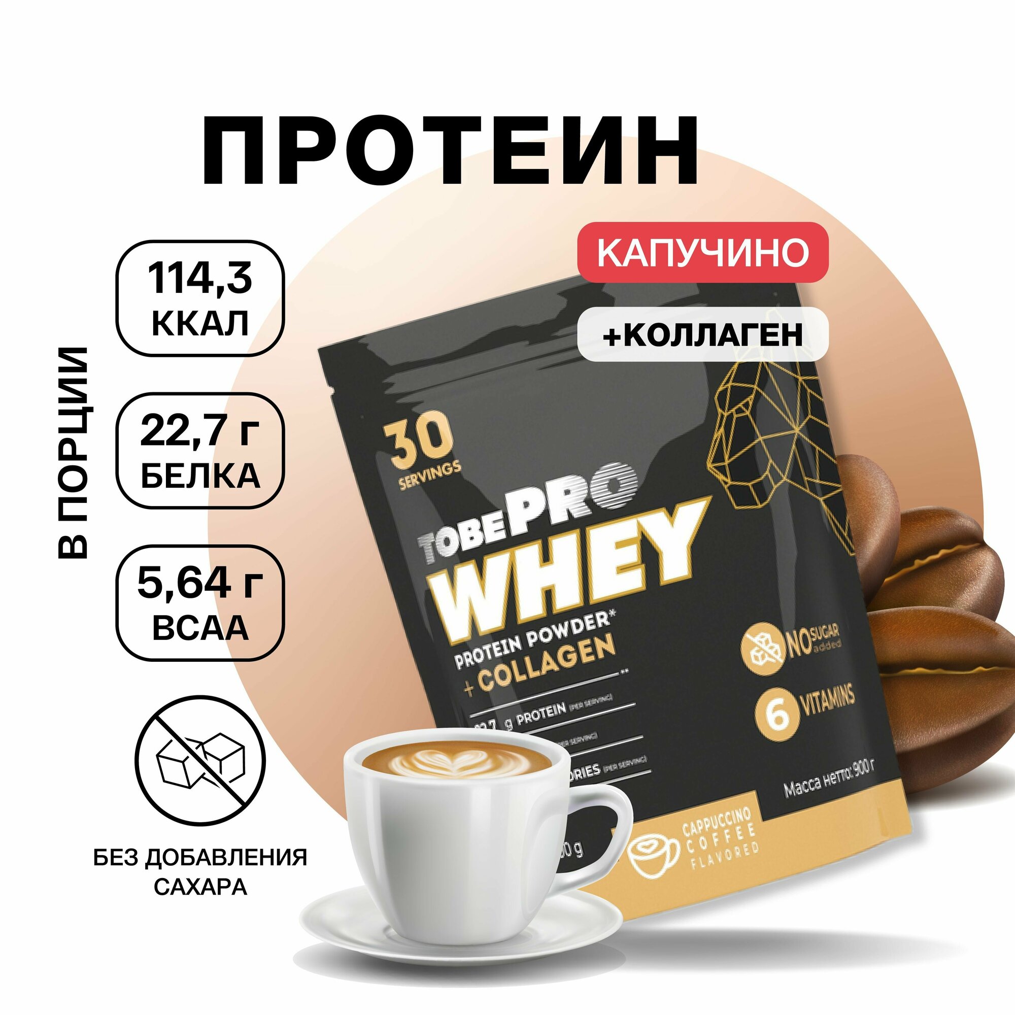 Протеин сывороточный без сахара TobePRO Whey Protein с коллагеном Кофе капучино, 900 г/30 порций