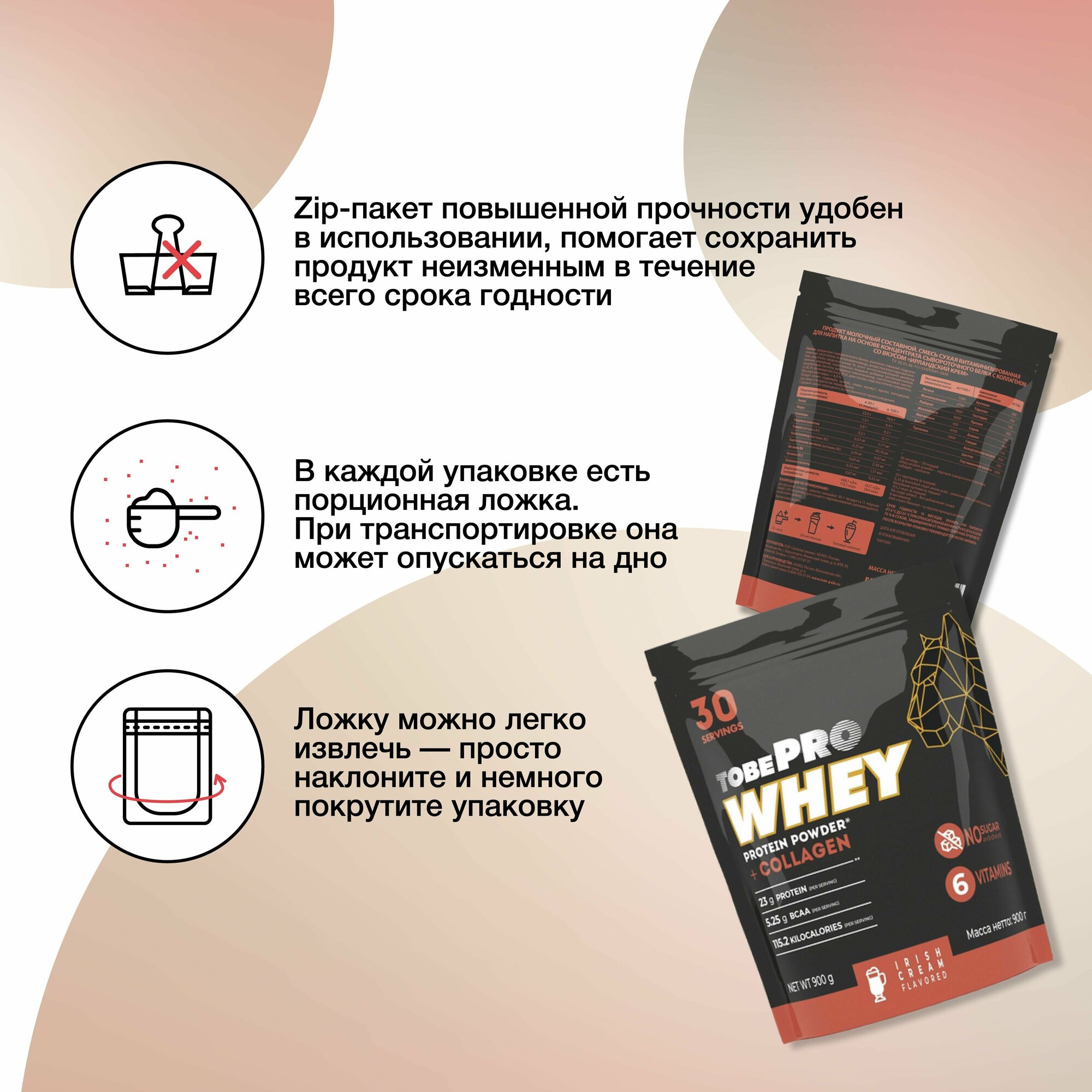 Протеин сывороточный без сахара TobePRO Whey Protein с коллагеном Ирландский крем, 900 г/30 порций