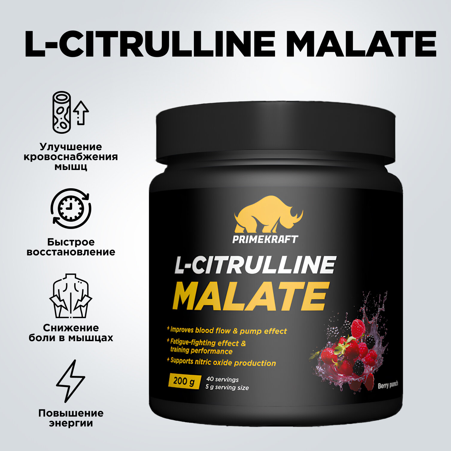 Купить Аминокислоты PRIMEKRAFT L-Citrulline Malate Цитруллин малат со вкусом berry punch / 200 гр (ягодный пунш) / 40 порций