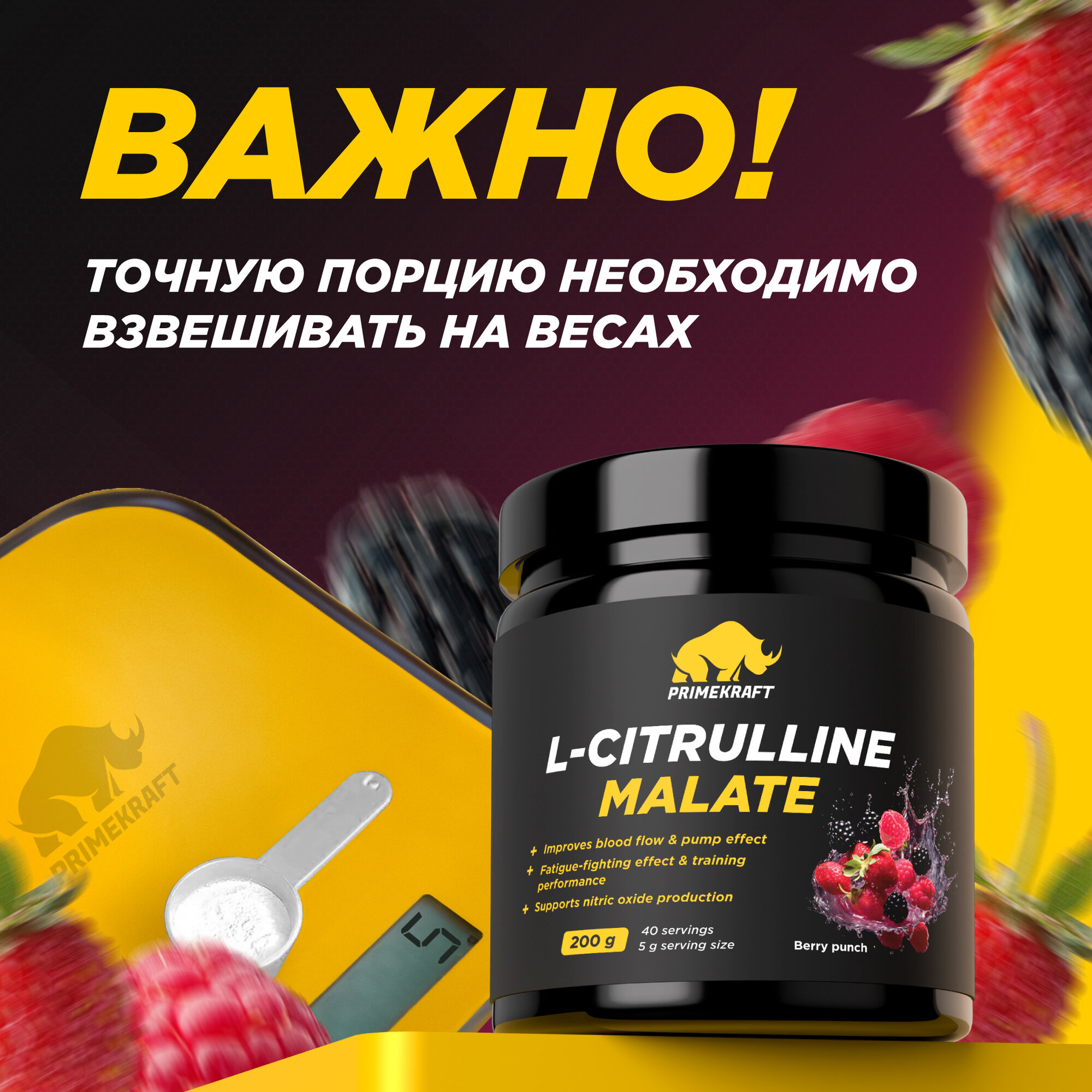 СохранитьАминокислоты PRIMEKRAFT L-Citrulline Malate Цитруллин малат со вкусом berry punch / 200 гр (ягодный пунш) / 40 порций интересное: