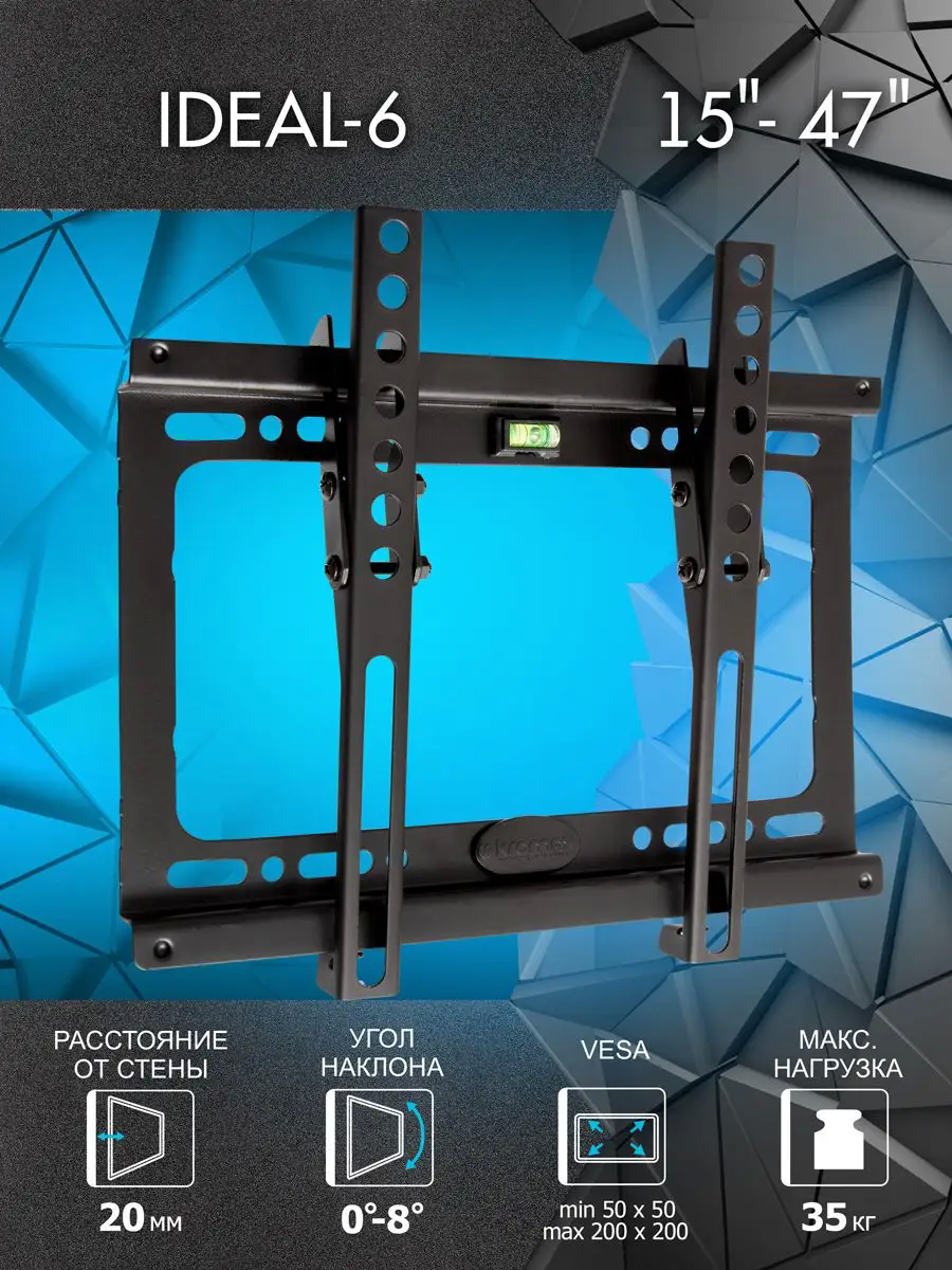 Кронштейн для телевизора Kromax IDEAL-6, 15-47", настенный, наклон, черный [26006]