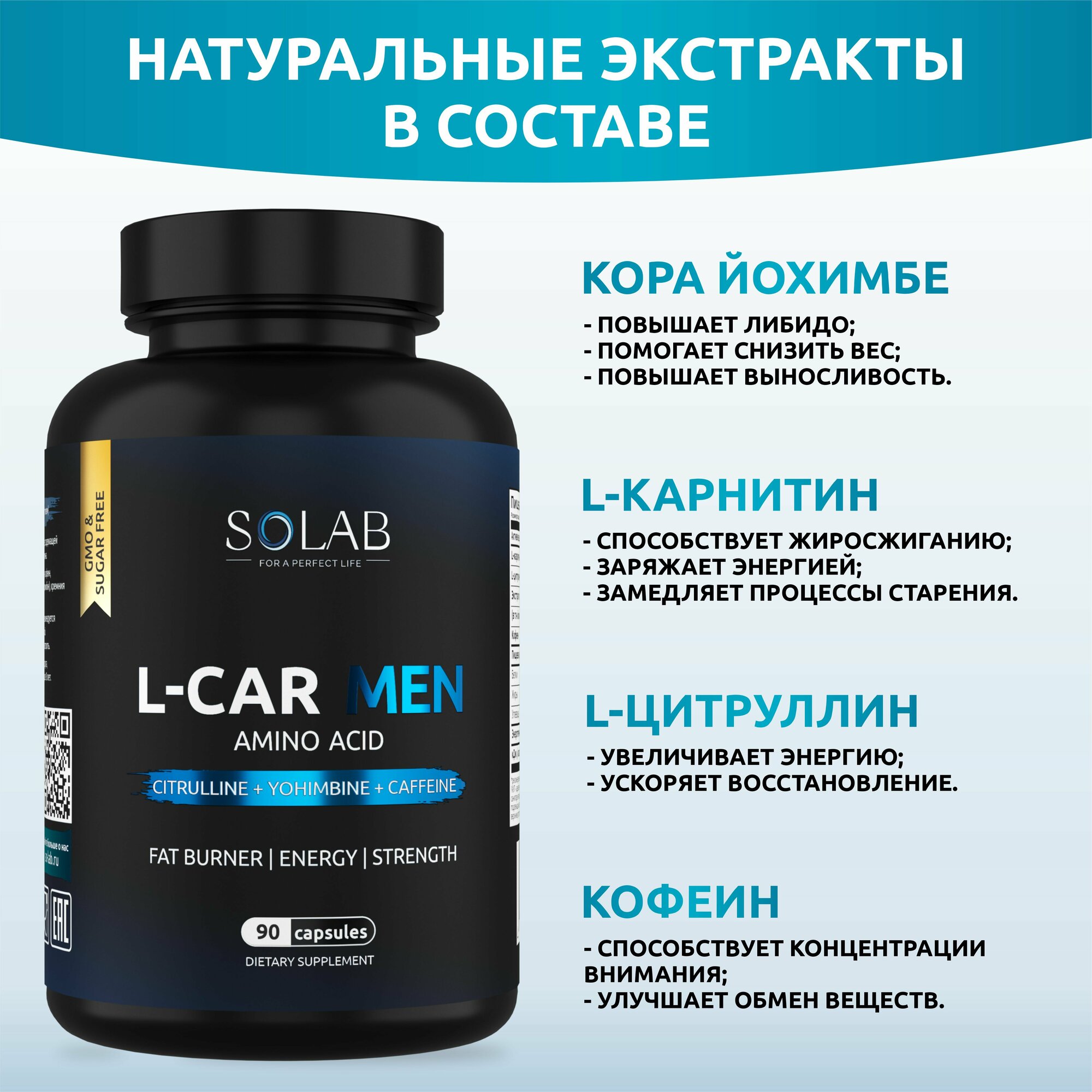 SOLAB L-Carnitine Men, для мужчин, энергетик, л-карнитин жиросжигатель, для похудения, 90 капсул интересное: