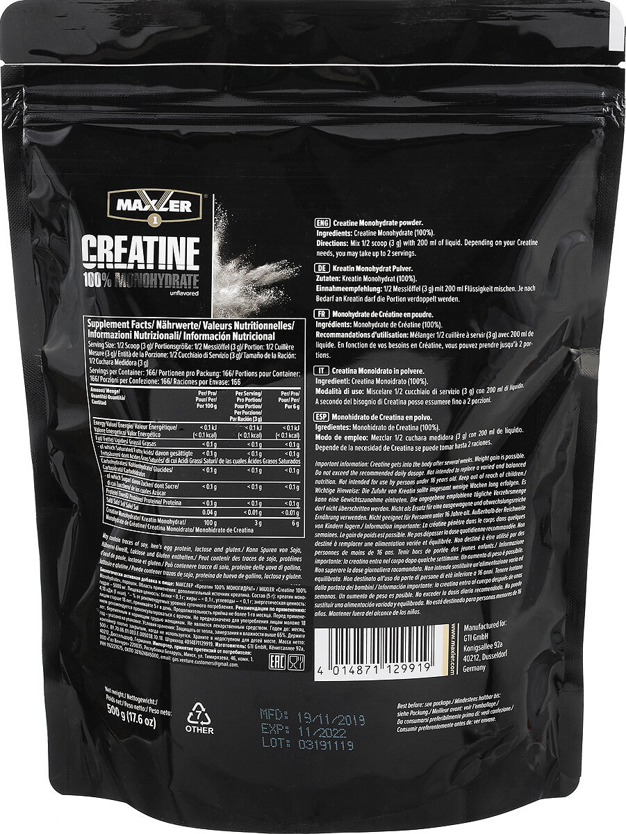 Креатин моногидрат Maxler Creatine 100% Monohydrate, 500 г интересное: