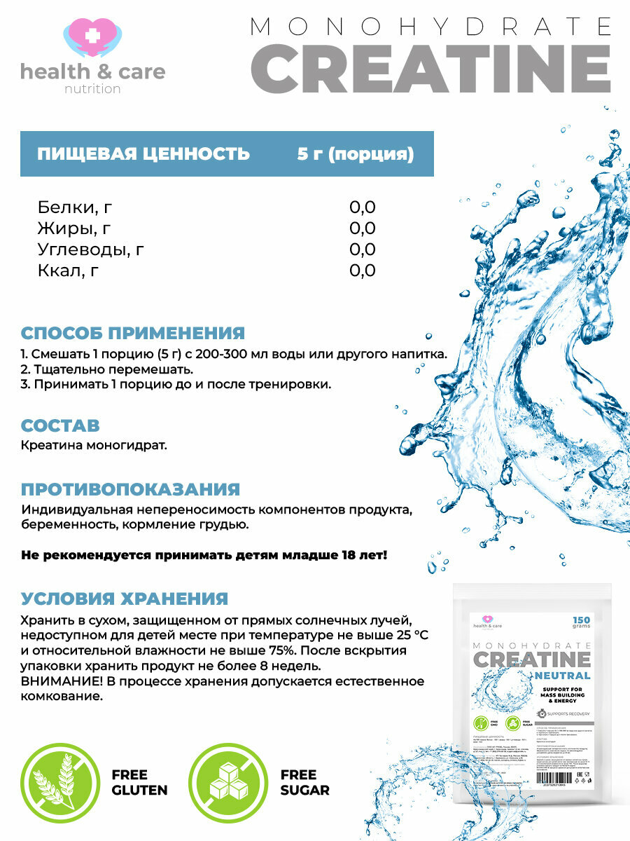 Креатин моногидрат от Health & Care 150 грамм без вкуса интересное: