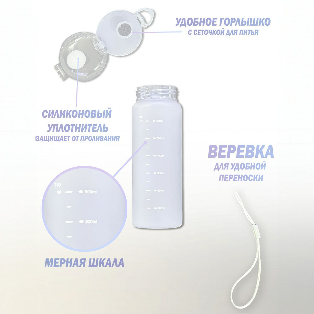 Спортивная бутылка, Бутылка спорт HELLO WATER, 780 мл., белый интересное: