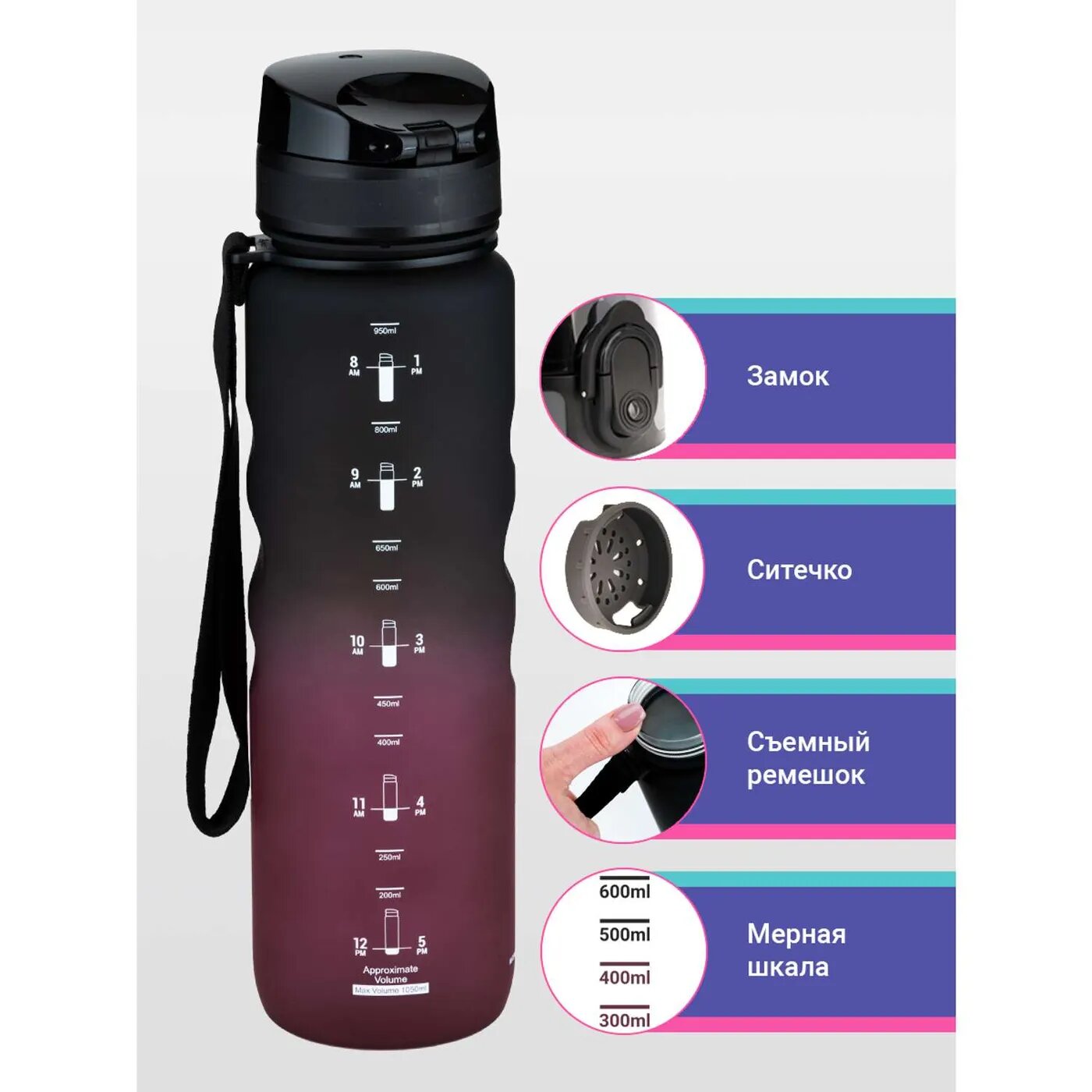 Купить Бутылка для воды спортивная из Тритана 1 литр черно-бордовый