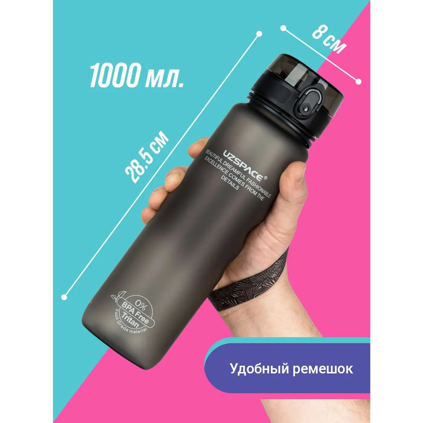 СохранитьБутылка для воды спортивная из Тритана UZSPACE1000 мл черный интересное: