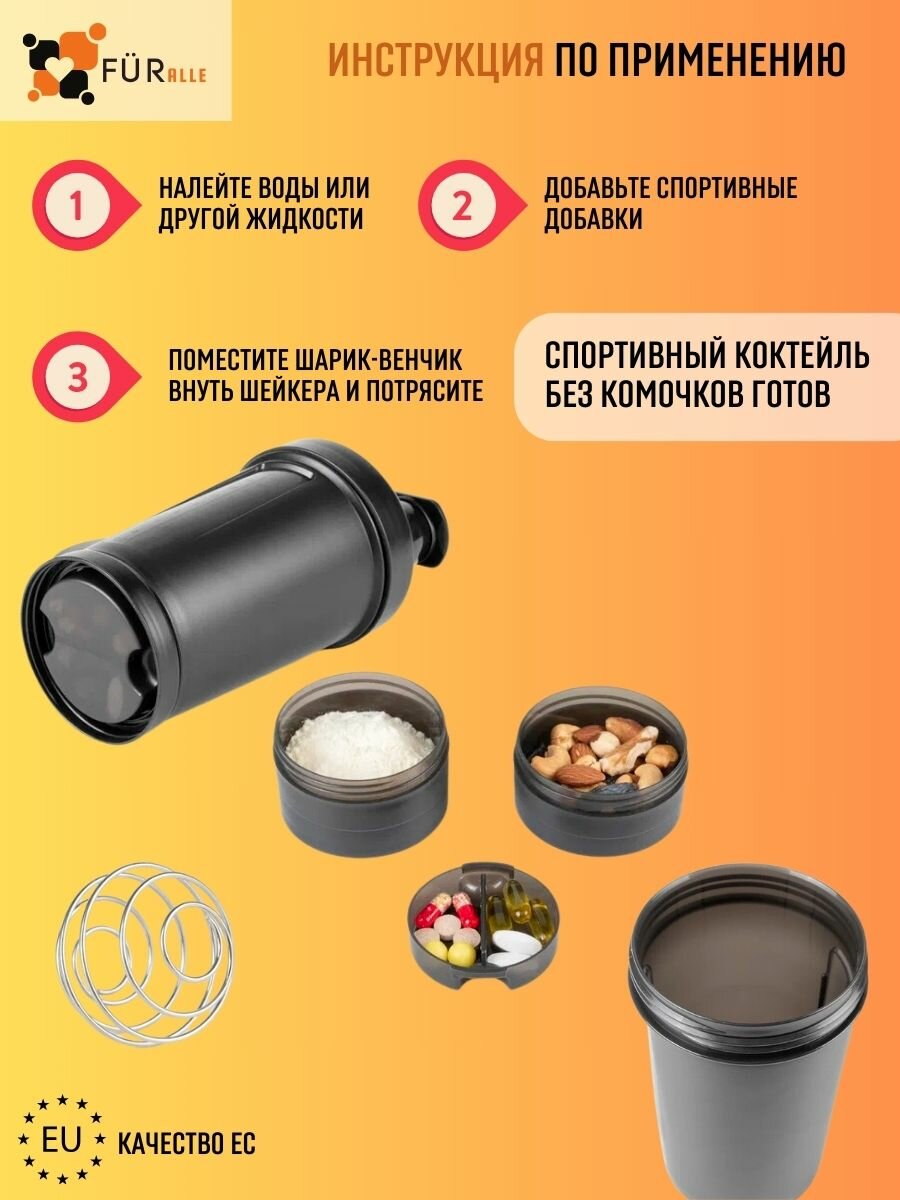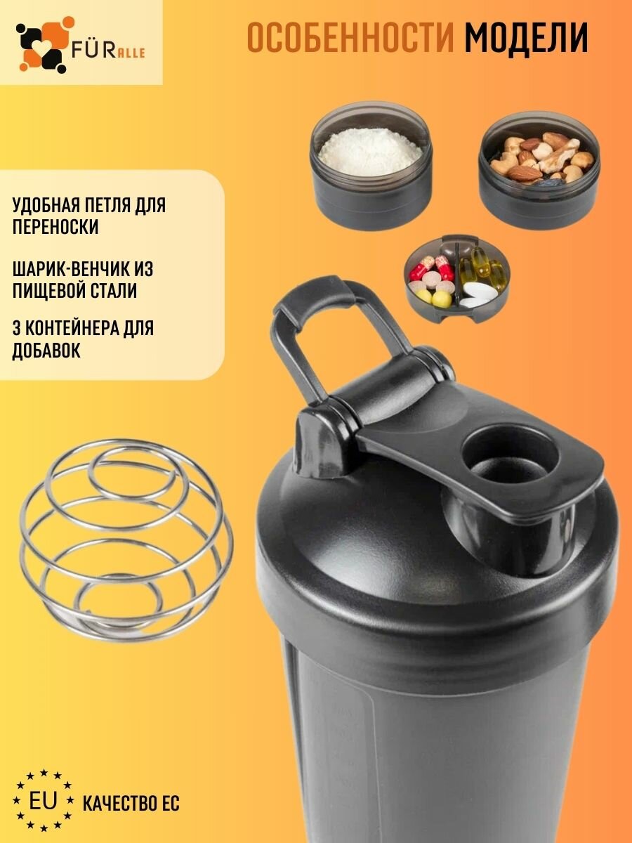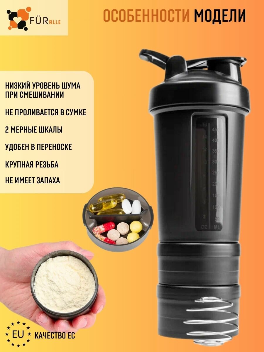 Шейкер для спортивного питания протеина коктейлей 624 мл с венчиком таблетницей 2 отсеками интересное: