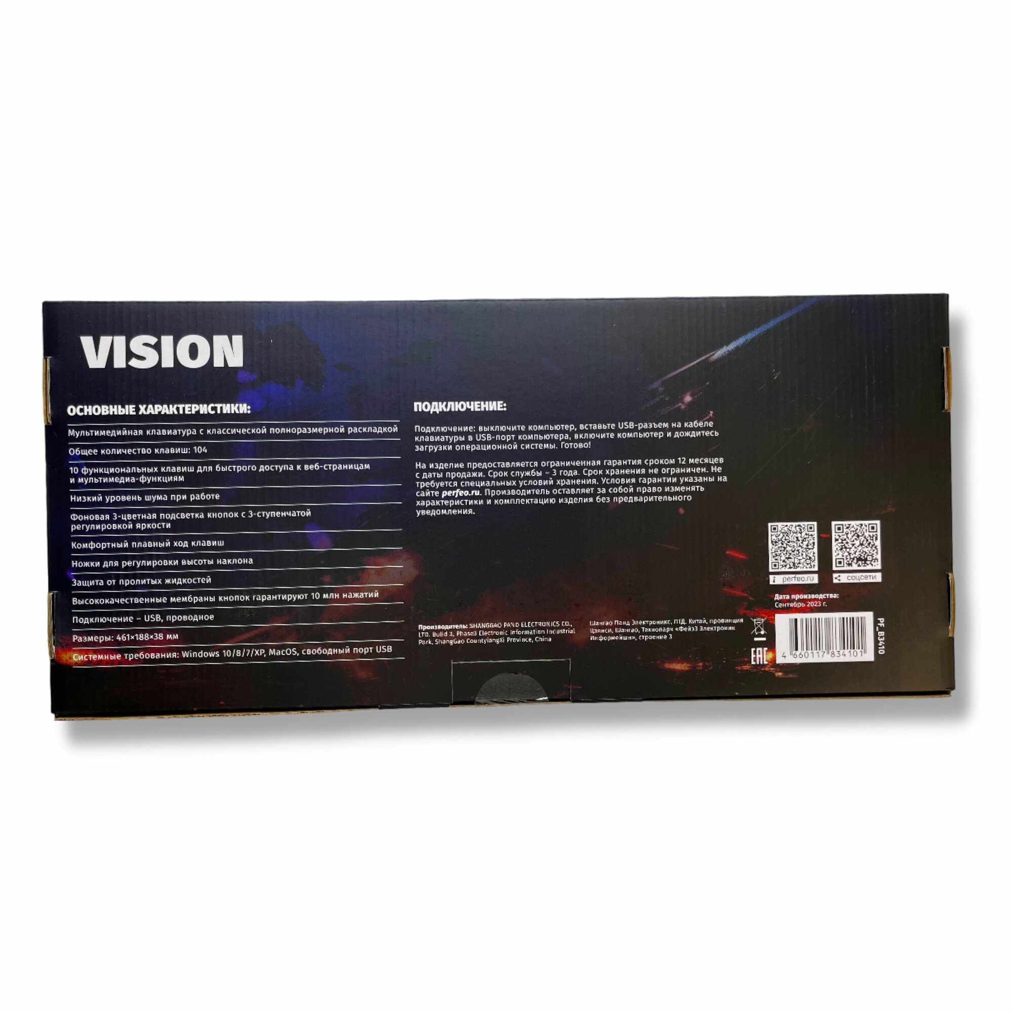 Игровая клавиатура для компьютера с подсветкой VISION Multimedia, мембранная проводная USB подключение, черная, Perfeo