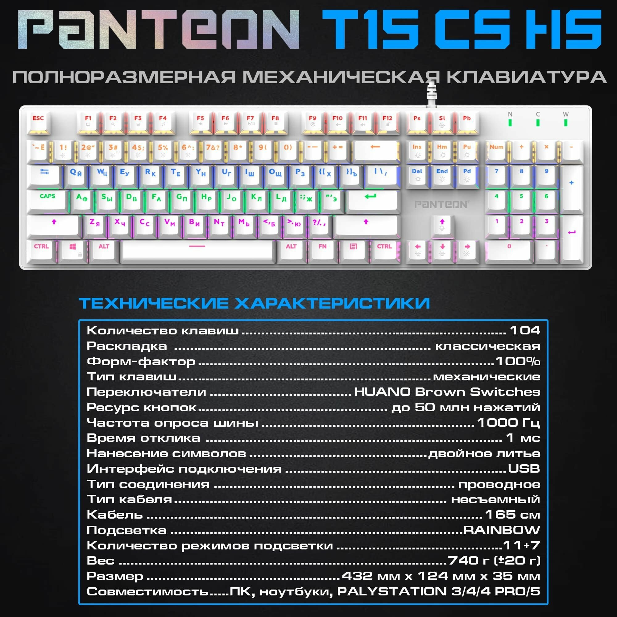 Механическая клавиатура С led-подсветкой RAINBOW PANTEON T15 СS HS белая интересное: