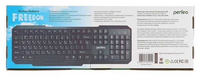 Купить Perfeo Клавиатура Perfeo FREEDOM PF-5191, беспроводная, мембранная, USB, 1xAA (нет в компл), чёрная