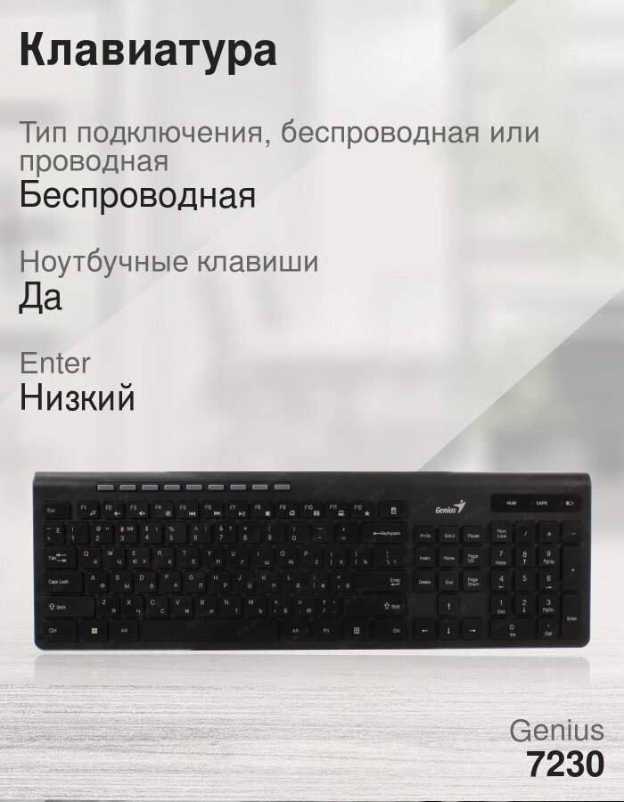 Клавиатура Genius SlimStar 7230 беспроводная черный (31310021402) интересное: