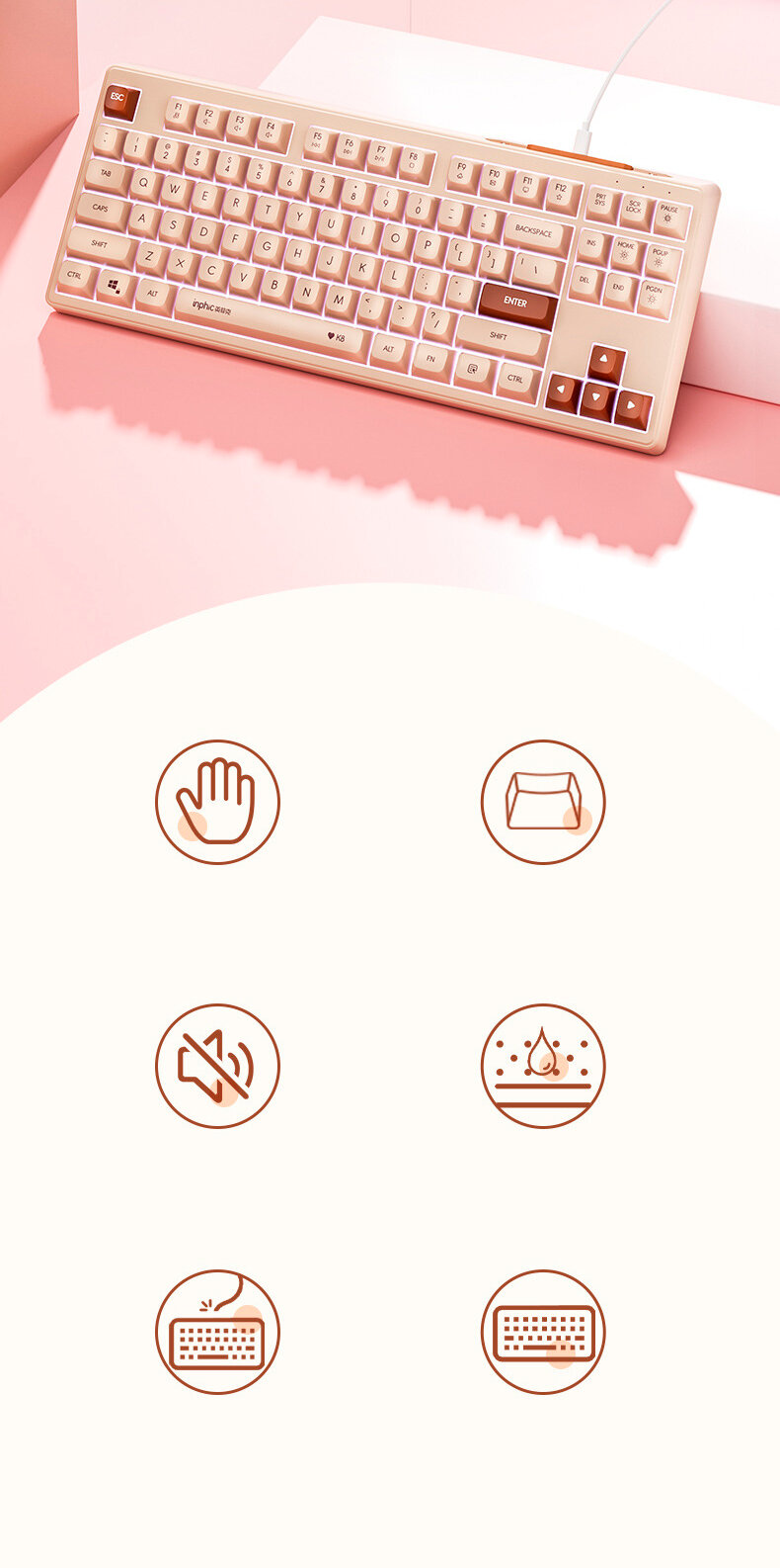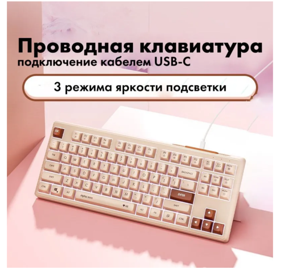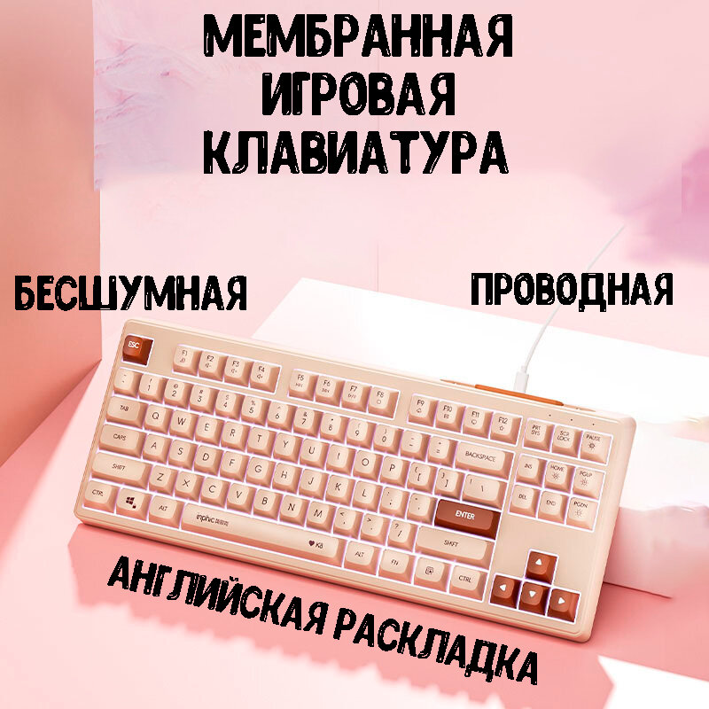 Игровая проводная мембранная клавиатура inphic К8, подсветка, Английская раскладка, 87 клавиш, бежевый интересное: