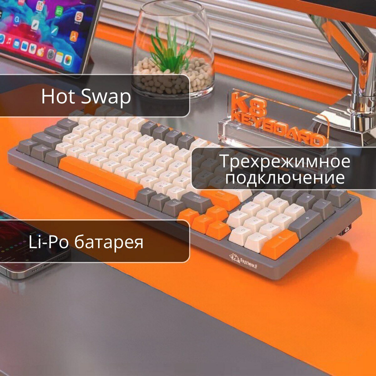 Клавиатура игровая Wolf K8 Shimmer, 100 кнопок (RUS), беспроводная интересное: