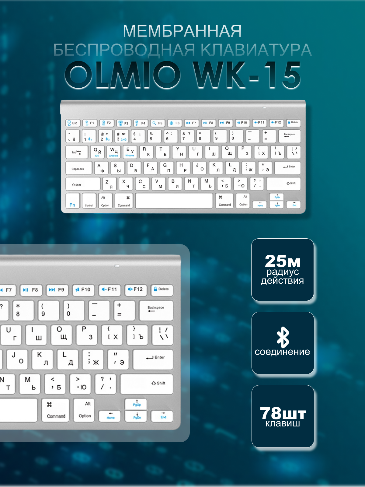 Клавиатура Olmio WK-15 беспроводная белый (046403) интересное: