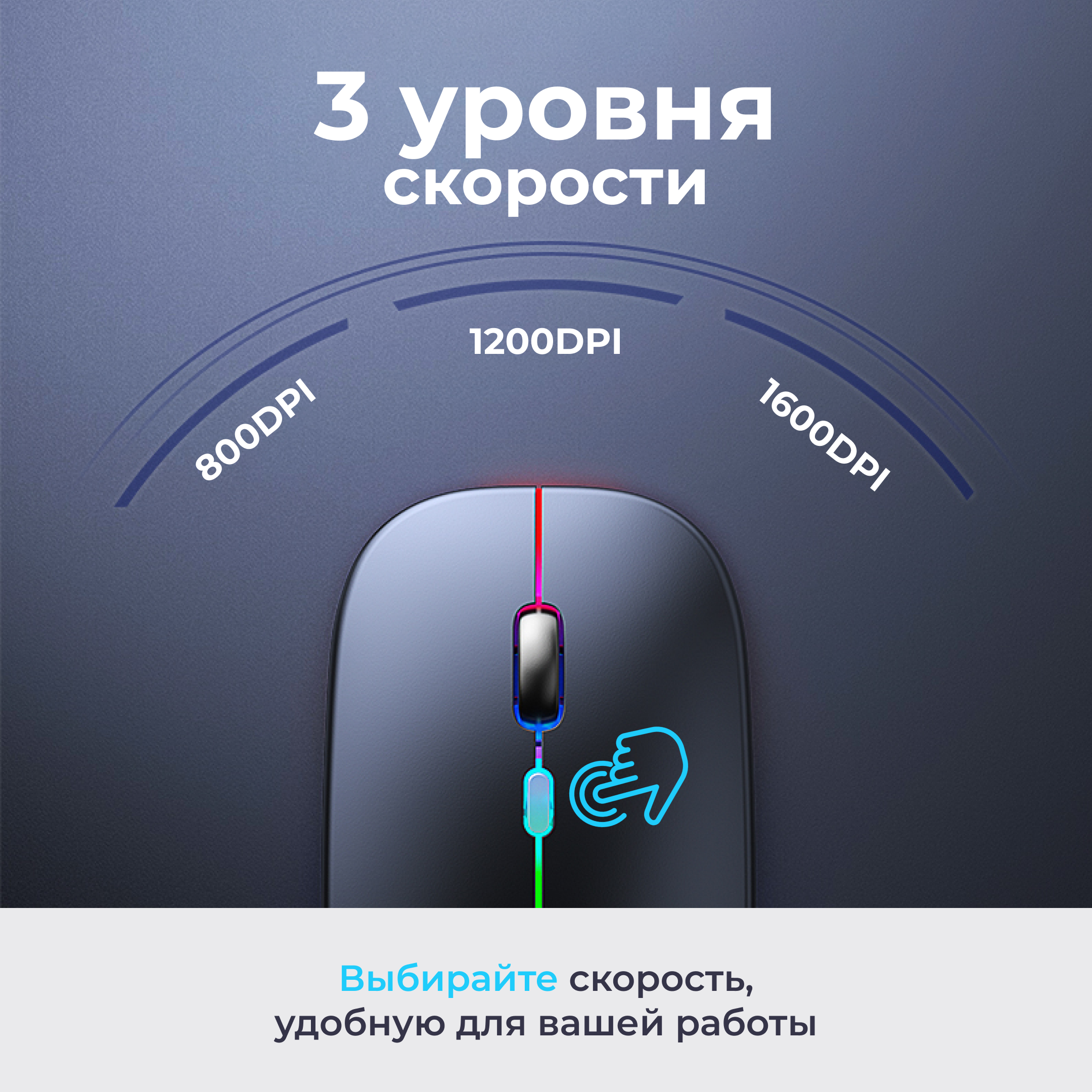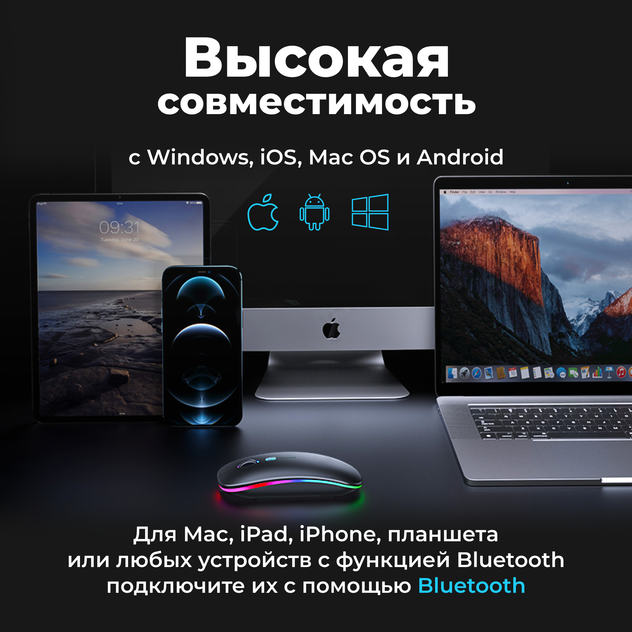 Мышь беспроводная / Бесшумная блютуз компьютерная мышь с подсветкой RGB / Bluetooth / Цвет чёрный интересное: