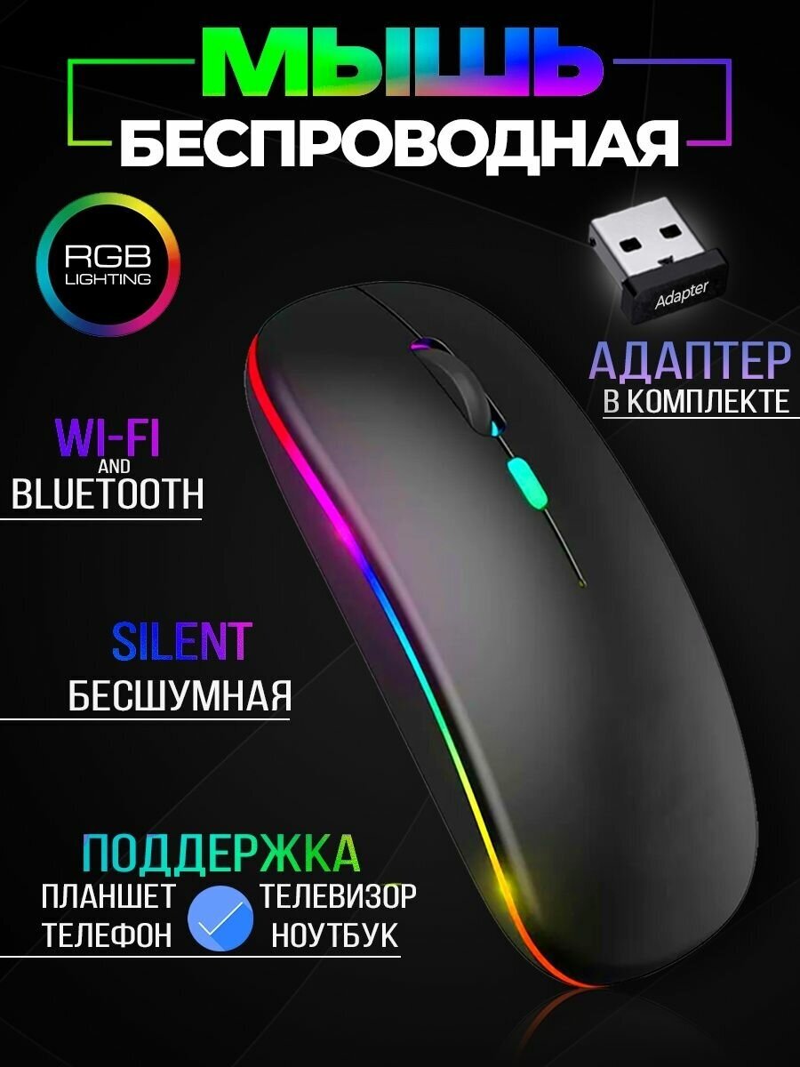 Мышь беспроводная для компьютера и ноутбука с подсветкой бесшумная (черная) интересное: