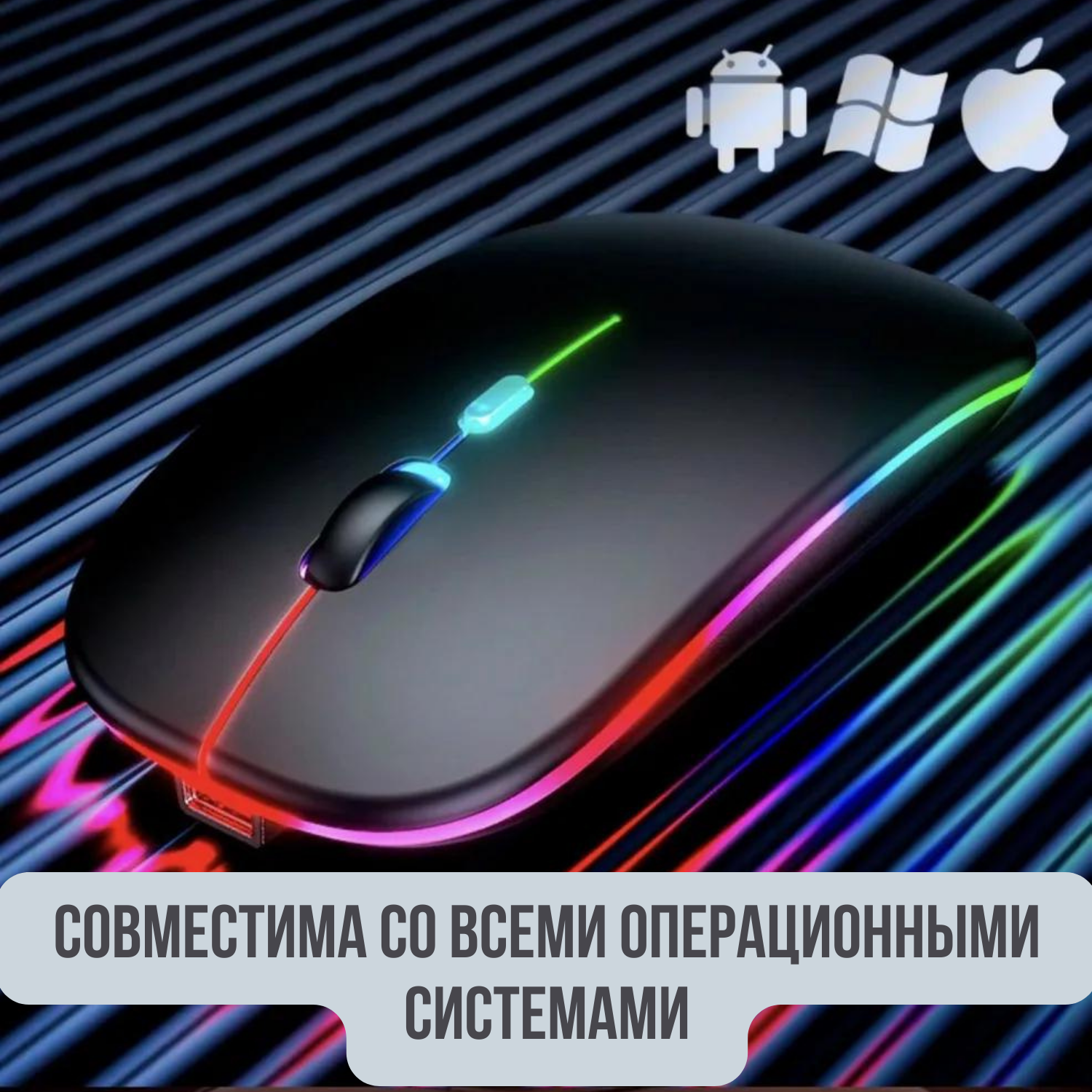 Беспроводная мышка для компьютера со встроенным аккумулятором/ Бесшумная блютуз компьютерная мышь с подсветкой RGB/ Bluetooth/ WiFi 2.4 гц