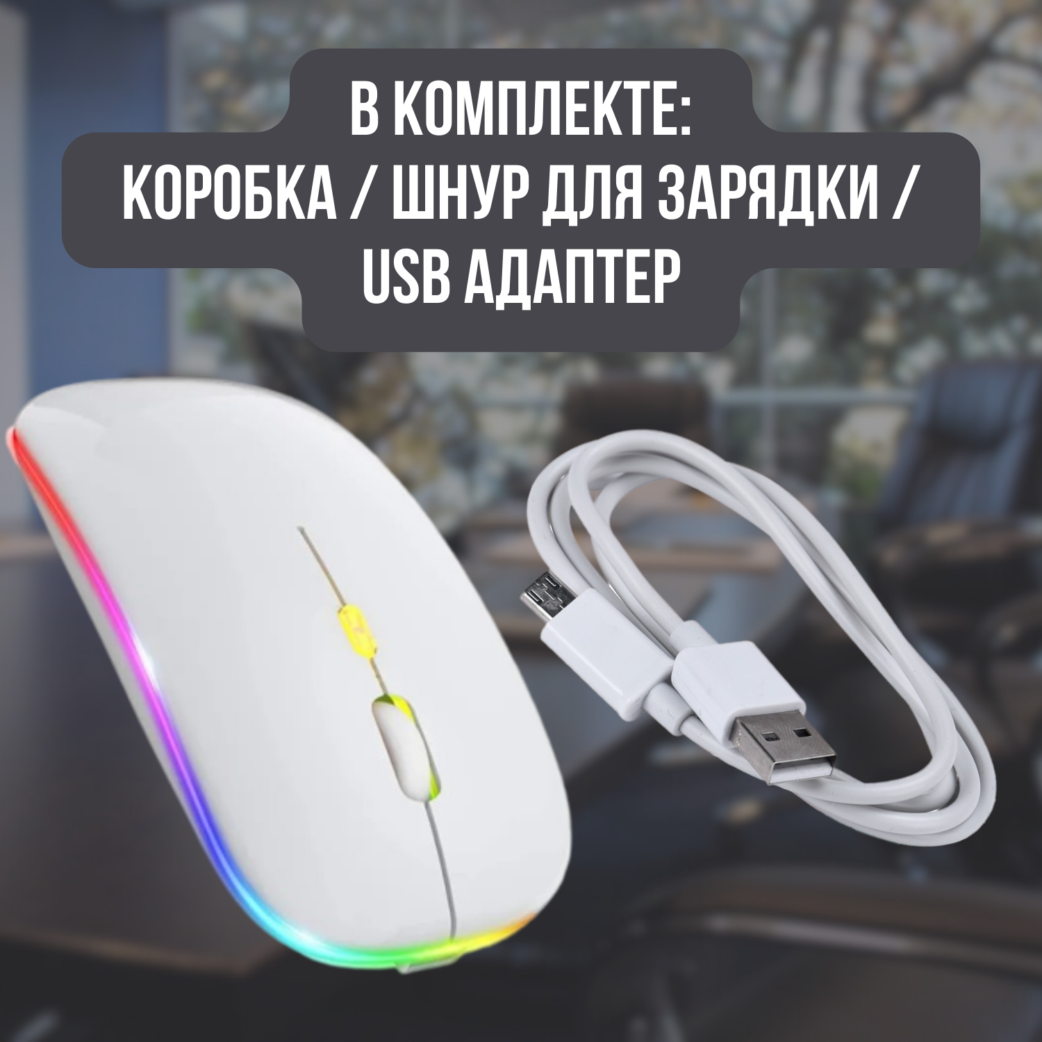 Беспроводная компьютерная мышь "Luna" с аккумулятором и RGB подсветкой белая интересное: